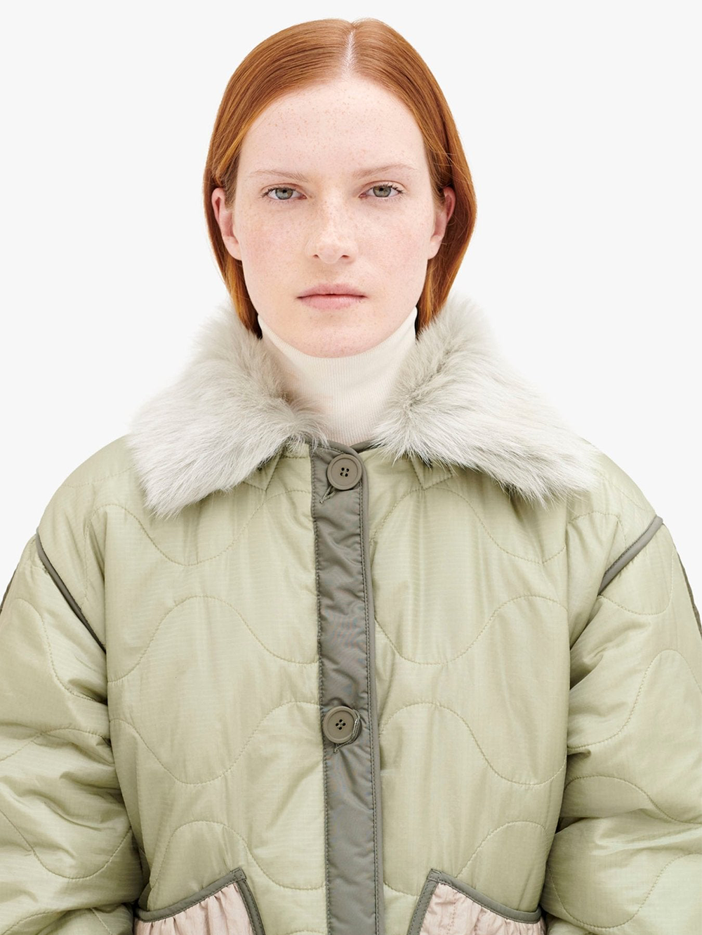 SHEARLING COLLAR PALE JADE LONG HAIR