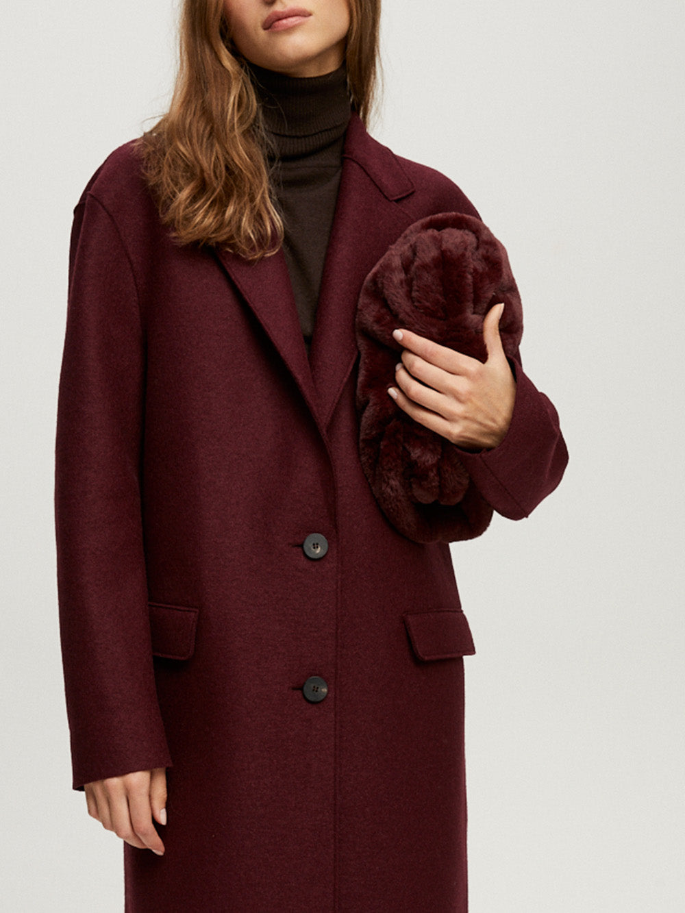 Maria La Rosa's Nita Game bag is crafted from burgundy faux fur. A new take on the brand's iconic Game bag.