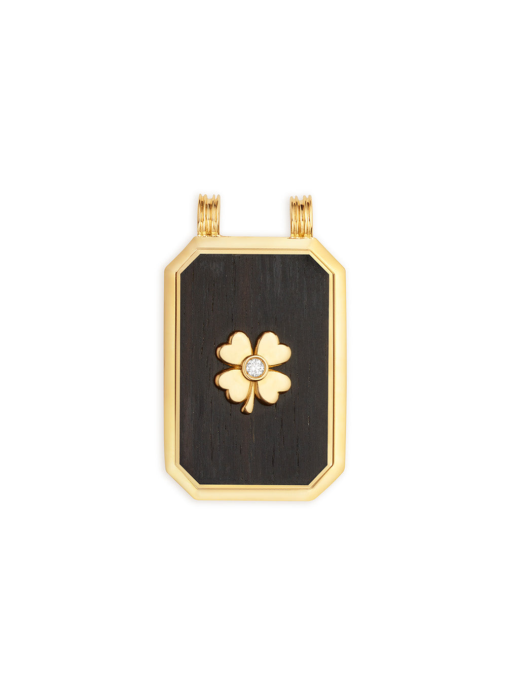 Ebony Clover Scapular signed Marie Lichtenberg made of ebony and 18 carat yellow gold. A small scapular decorated with a gold clover in its center, set with a diamond. - Sold on a 18 carat gold plated yellow - Dimensions: 19.3mm x 28mm x 3.1mm - Sold in a jewelry box - Certificate of authenticity provided with this piece - Necklace is guaranteed for 2 years from the date of purchase upon presentation of the invoice