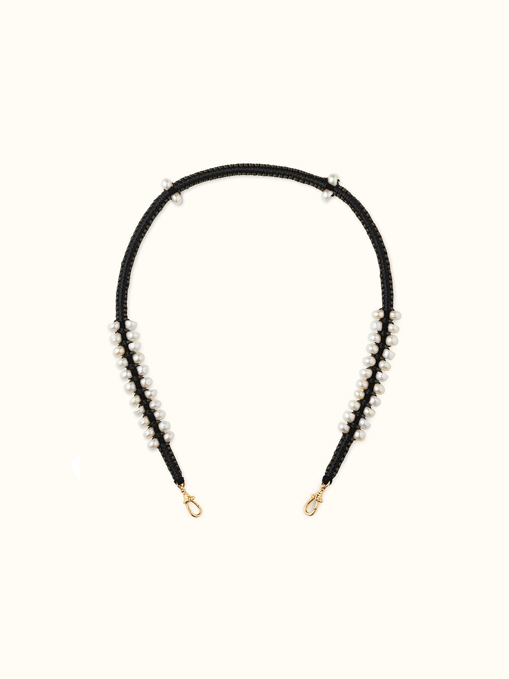 Mauli Ica Link Black & Grey de Marie Lichtenberg. This long cord is decorated with freshwater pearls and closes with two clasps which allow Marie Lichtenberg lockets or scapulaires to be attached. Made in Italy.