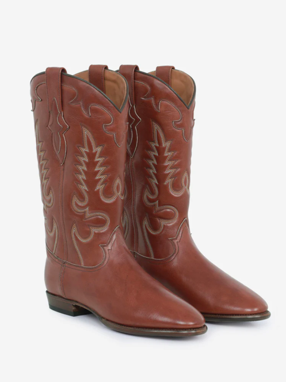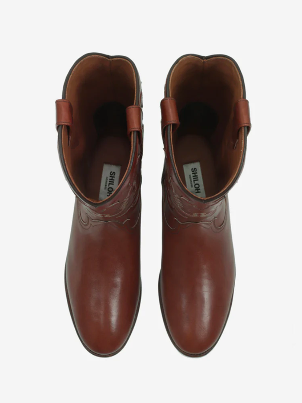 The Santiag boots in leather color brandy from the Shiloh Heritage brand are made entirely by hand.