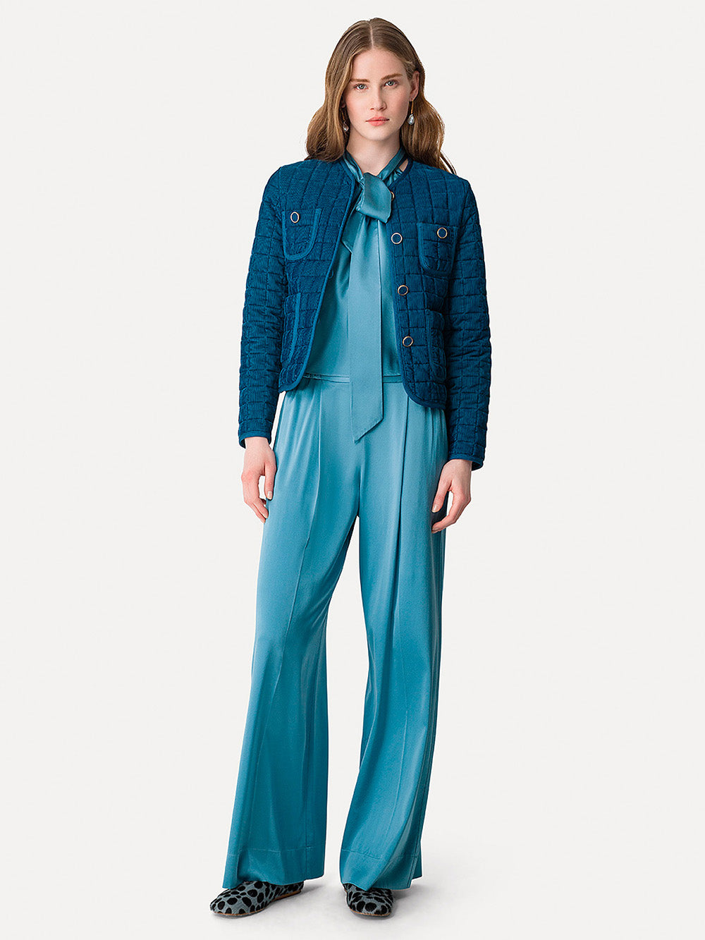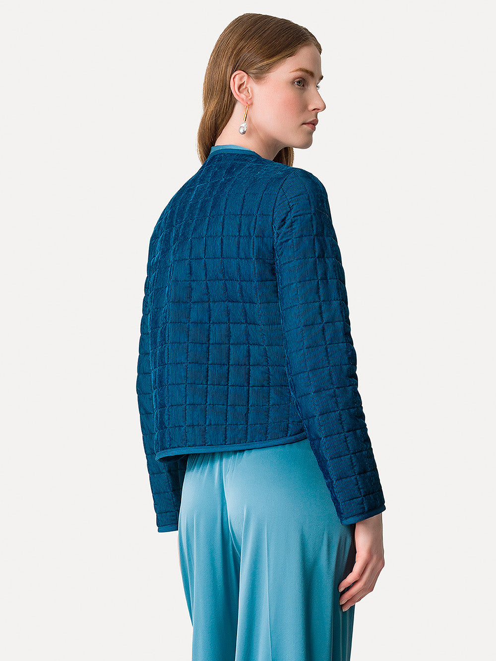 Quilted velvet jacket by Forte_Forte, crafted from a dark petrol-colored ribbed velvet fabric. A short jacket with vintage inspiration.