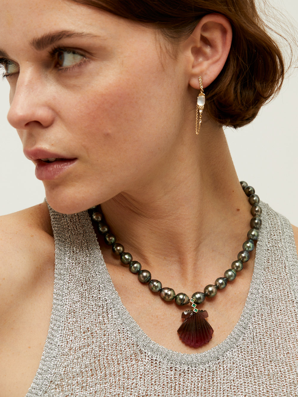 Collier Perles de Tahiti Grand Modèle signé Violette Joaillerie confectionné en perles de Tahiti aux reflets gris irisés.