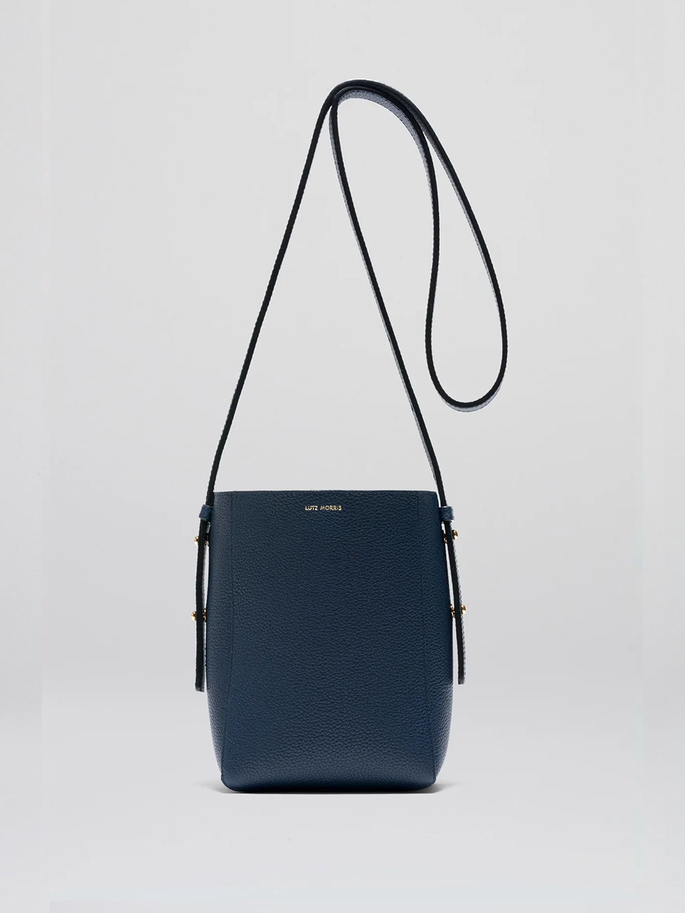 Le sac Parker taille S couleur navy est réalisé par Lutz Morris. Confectionné en Allemagne avec un cuir de veau, il possède une poche extérieure avec la structure signature de Lutz Morris.