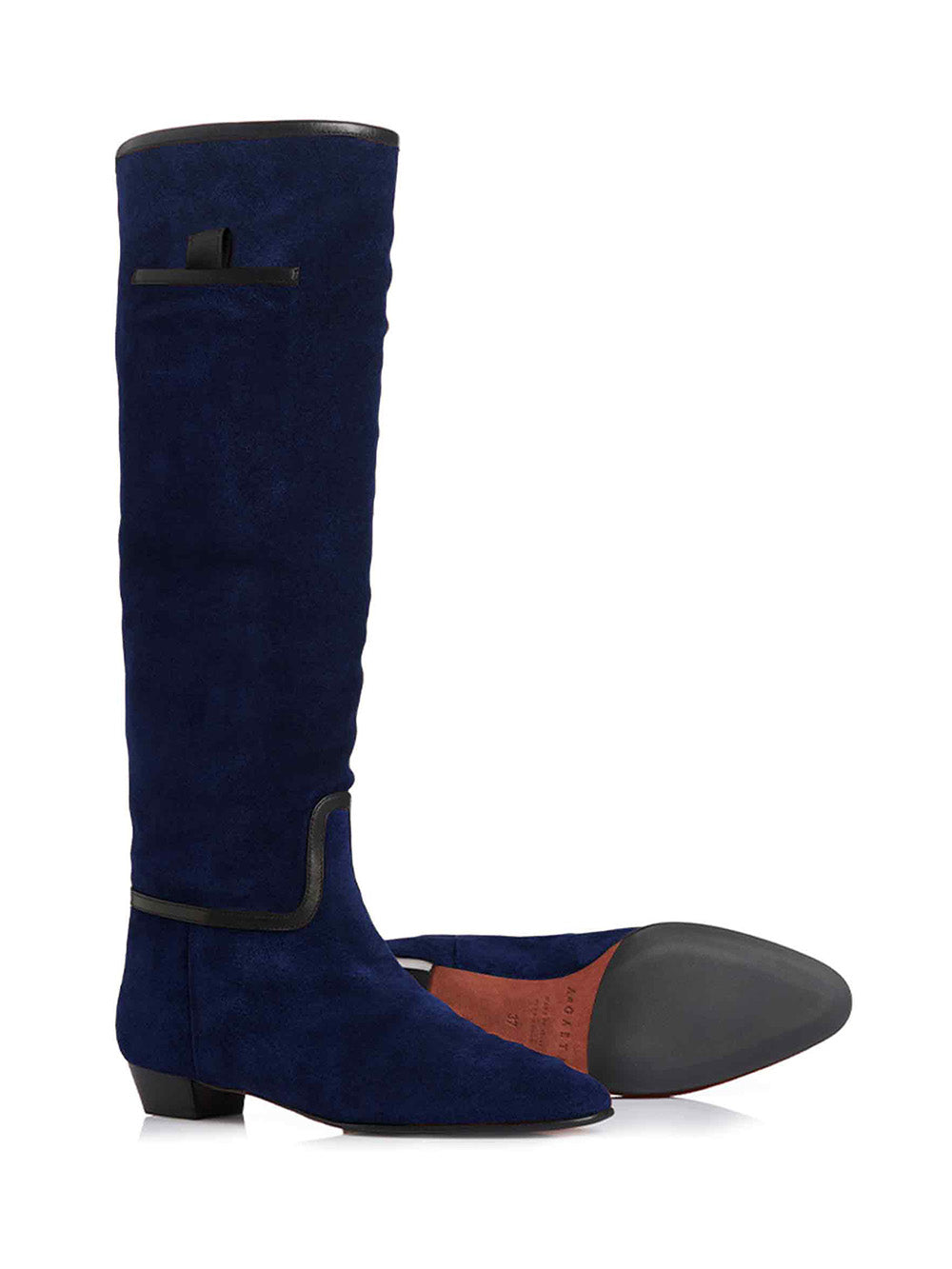 The Leggera Ombra Wax Crosta by A Di Gaeta is crafted from navy blue suede. A pair of high boots with a comfortable heel and side pockets.
