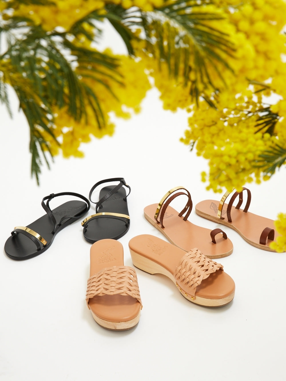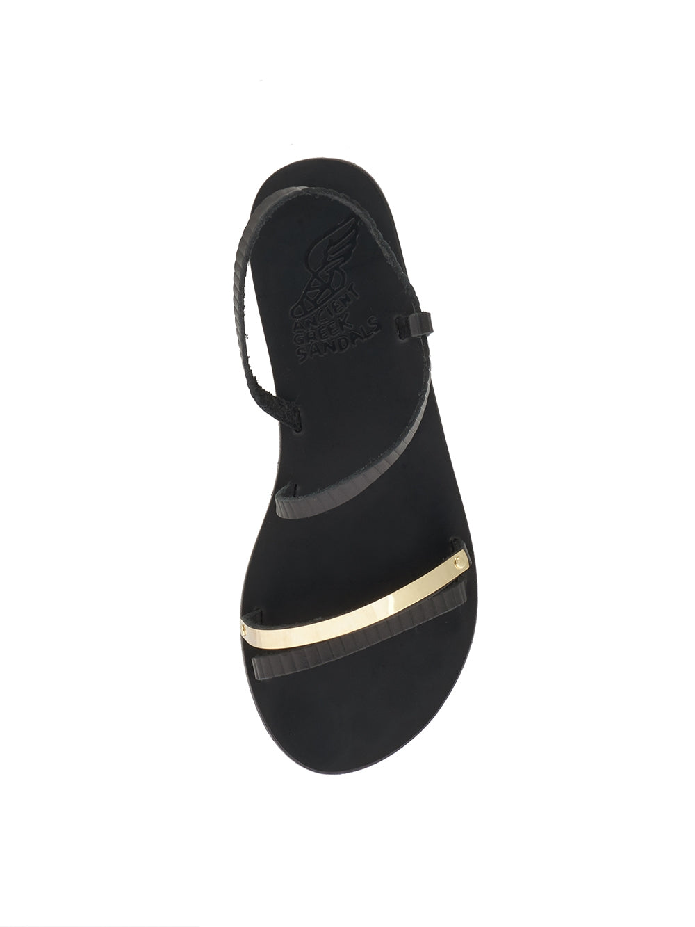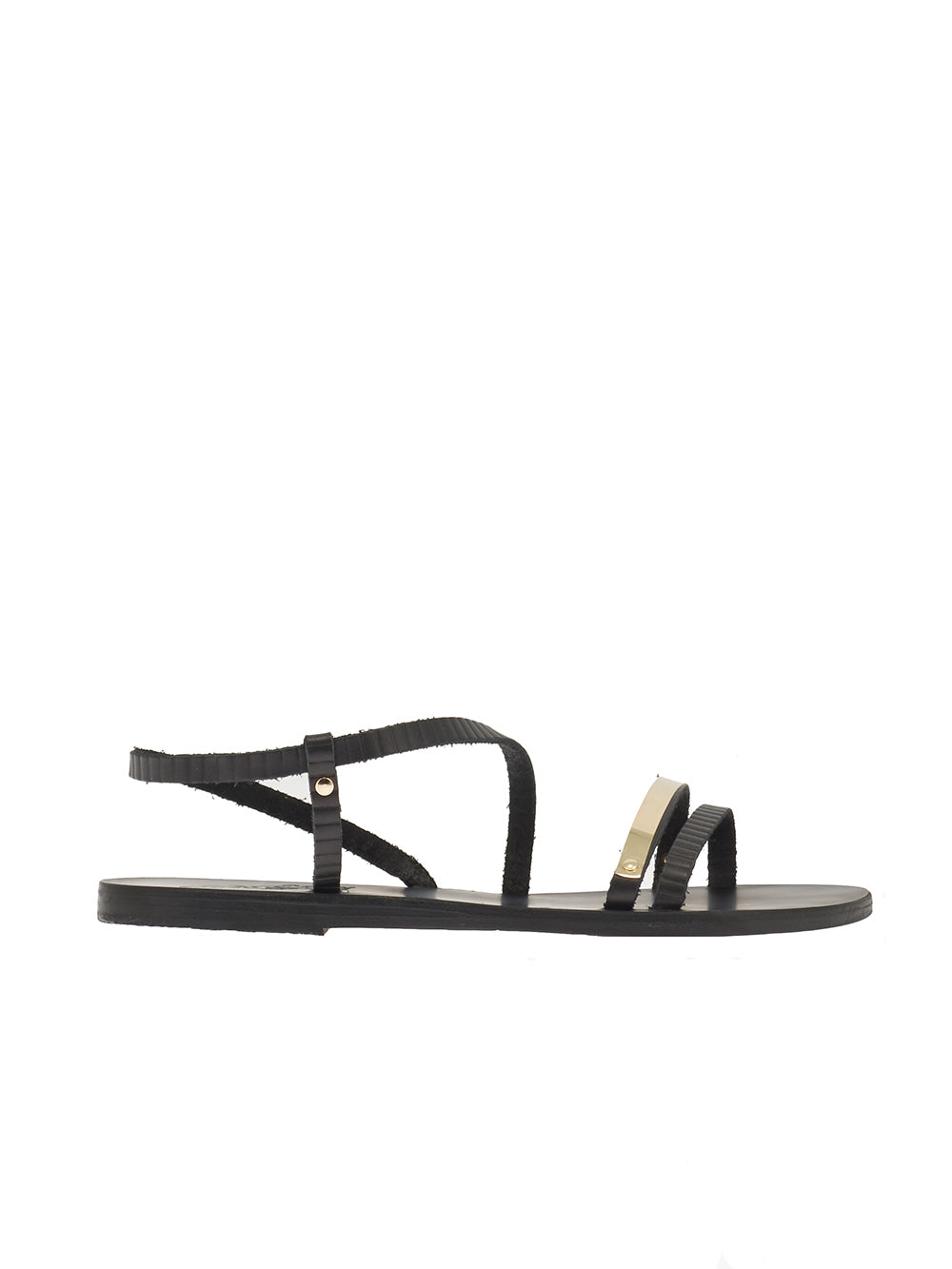 Ancient Greek Sandals Goudi sandals. This sandal is made of leather combined with golden details on a thin strap that holds the foot. This product is handmade in Greece.