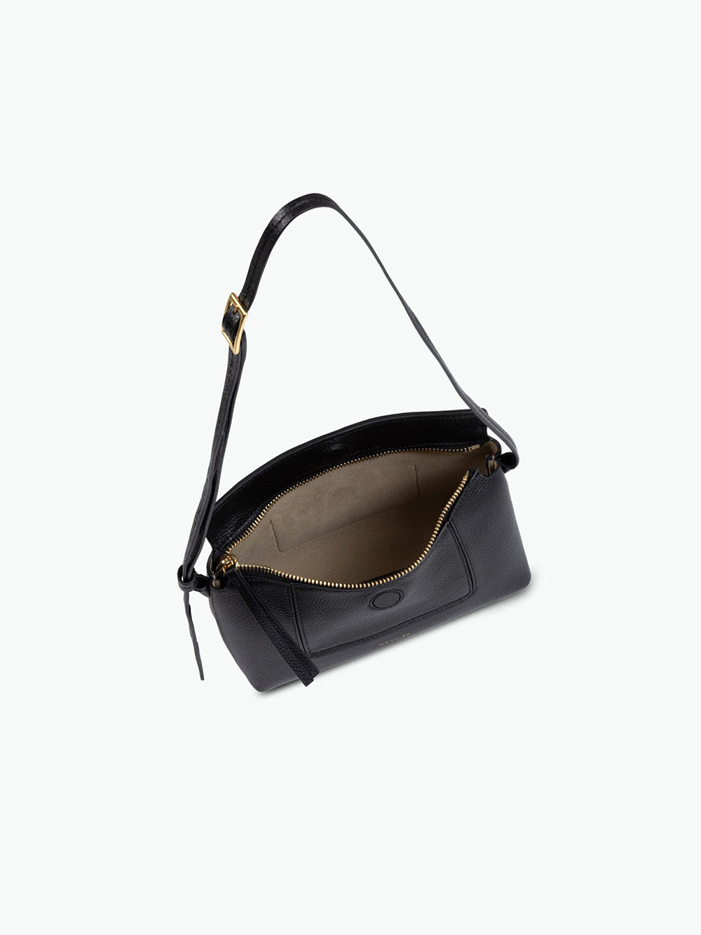 Wandler's Penelope Slouch Mini bag is crafted from black grained calfskin. The bag can be worn across the body, over the shoulder, or carried by hand thanks to its adjustable strap.