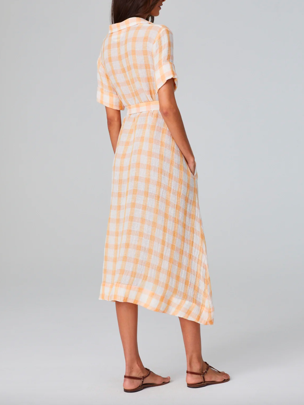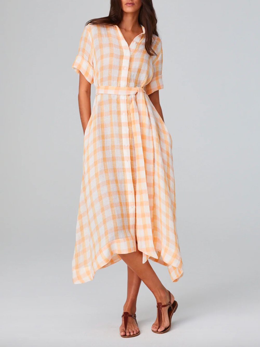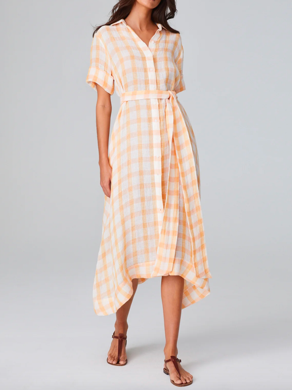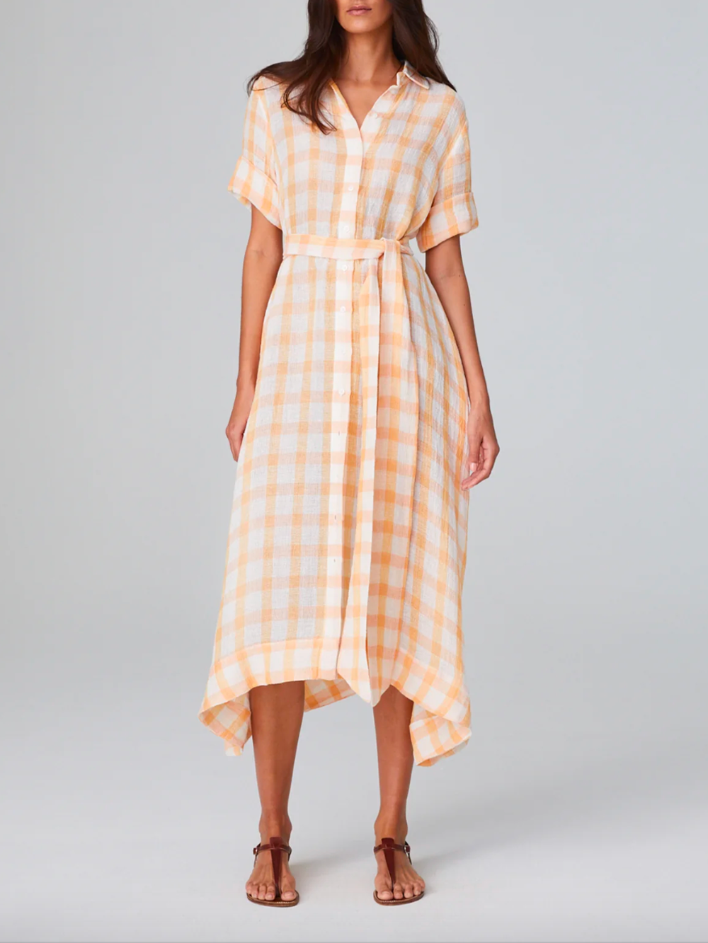 The shirt dress of designer Lisa Marie Hernandez is made in the United States.