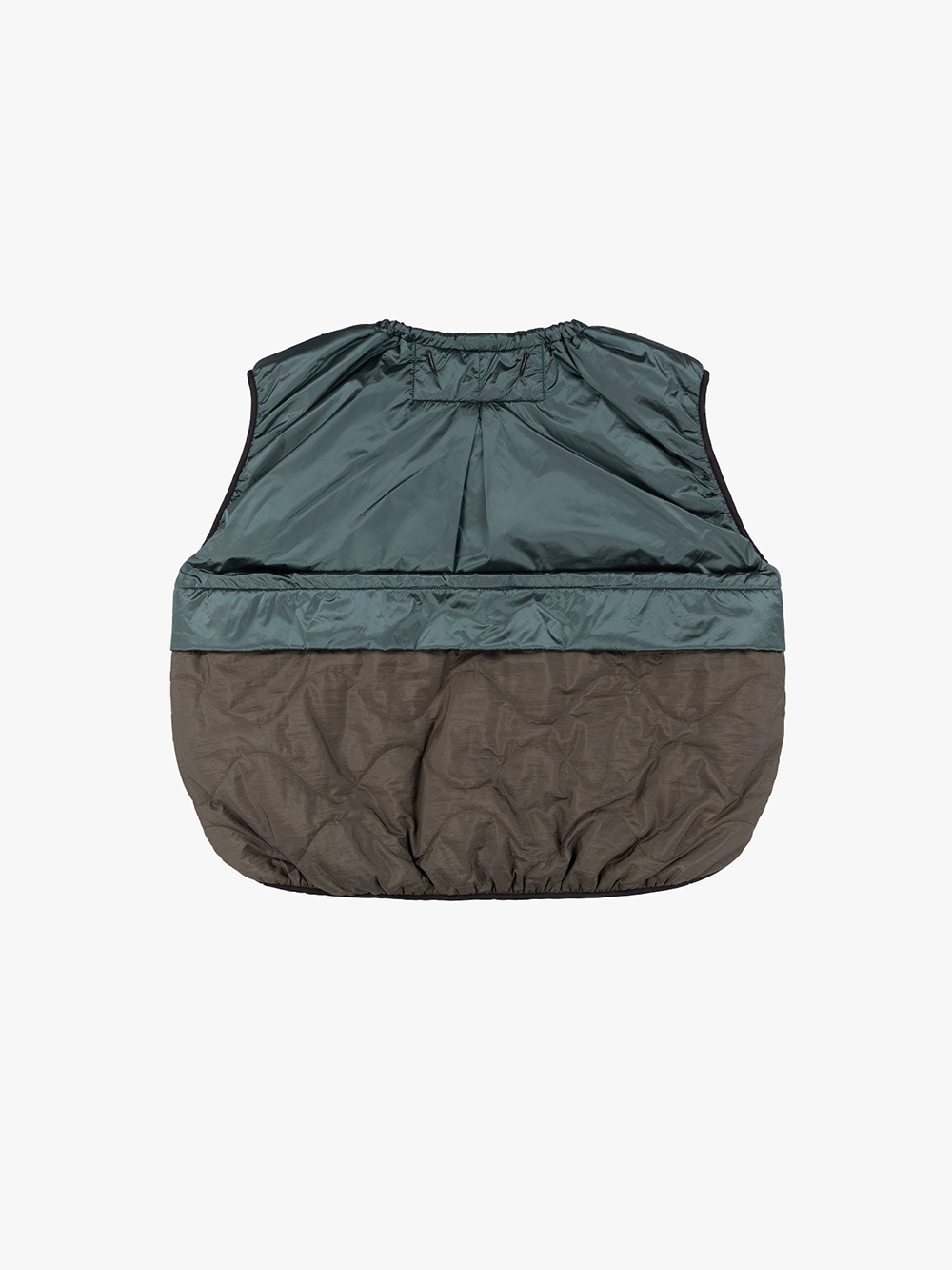 Marfa Stance's Parachute Jacket is crafted from waterproof nylon in dark sea green and black. A lightweight, fully reversible sleeveless jacket.