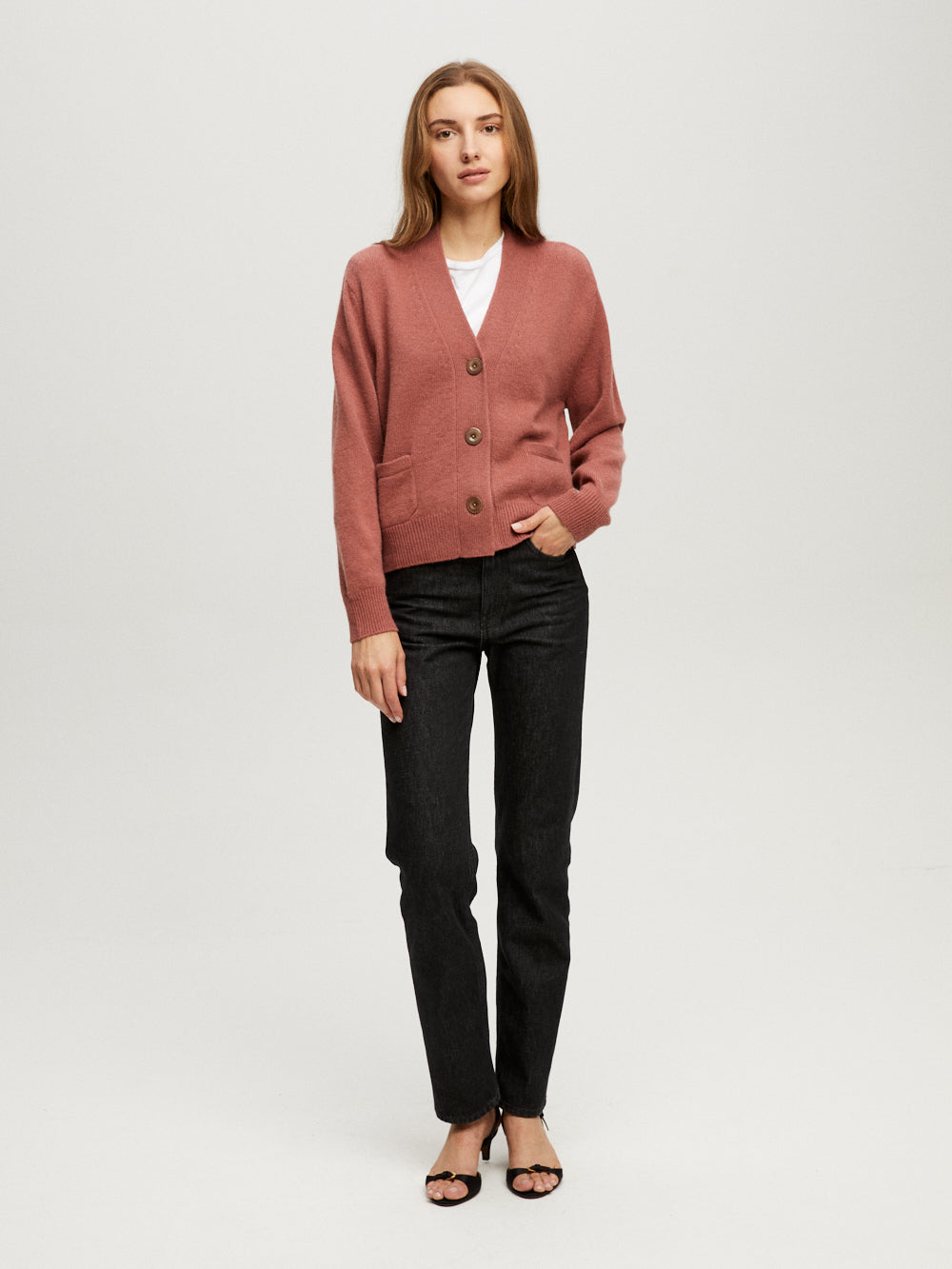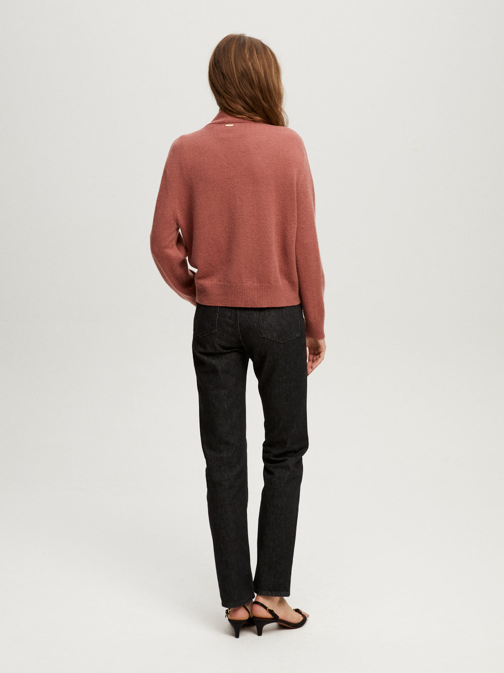 The Lou Velours BY MARIE Collection cardigan is made from cashmere and wool. BY MARIE cashmere is made in limited editions by hand using an antique knitting machine in a 20-year-old organization in Nepal. This company is composed mainly of women and, like us, is committed to passing on quality expertise.