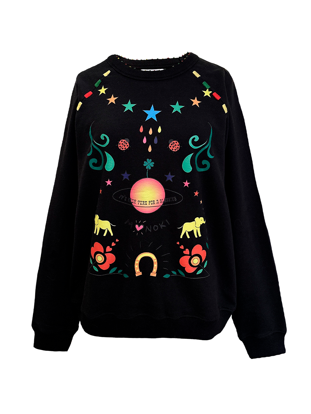 Monoki's Blessed Sweat is a soft toy, fully printed in front and on the back. Small beads are embroidery all around the col.