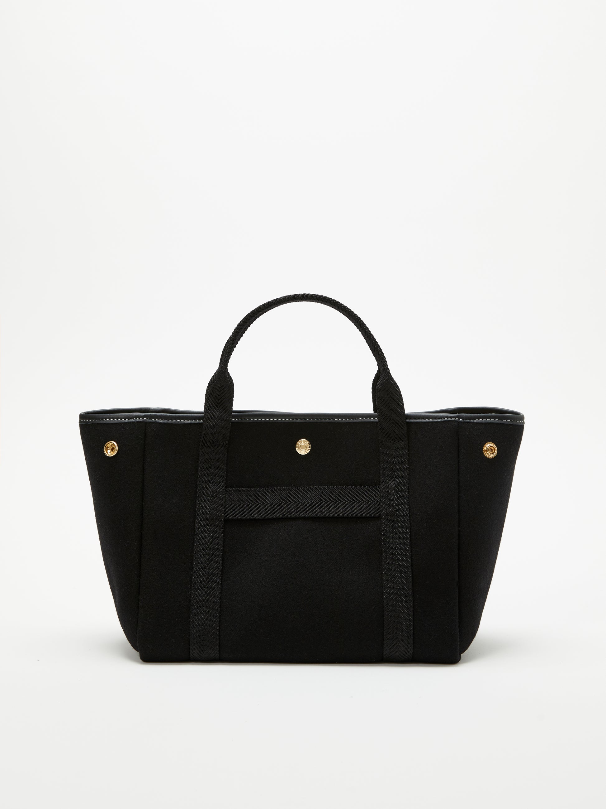 Traversée S bag by Rue de Verneuil made from black flannel with matching leather trim.