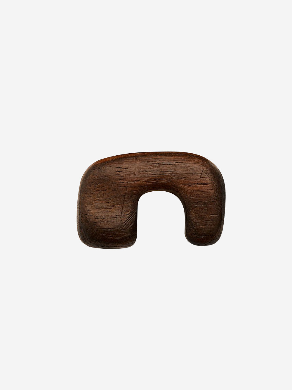 Item #4, designed by Joelle Kharrat, crafted from natural ebony wood The color varies between brown and dark brown. Lower piece of the Totem pendant.