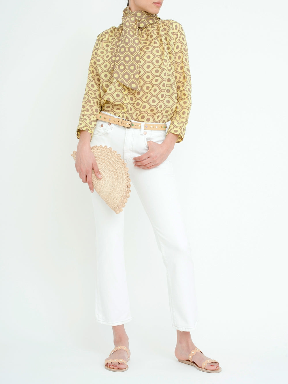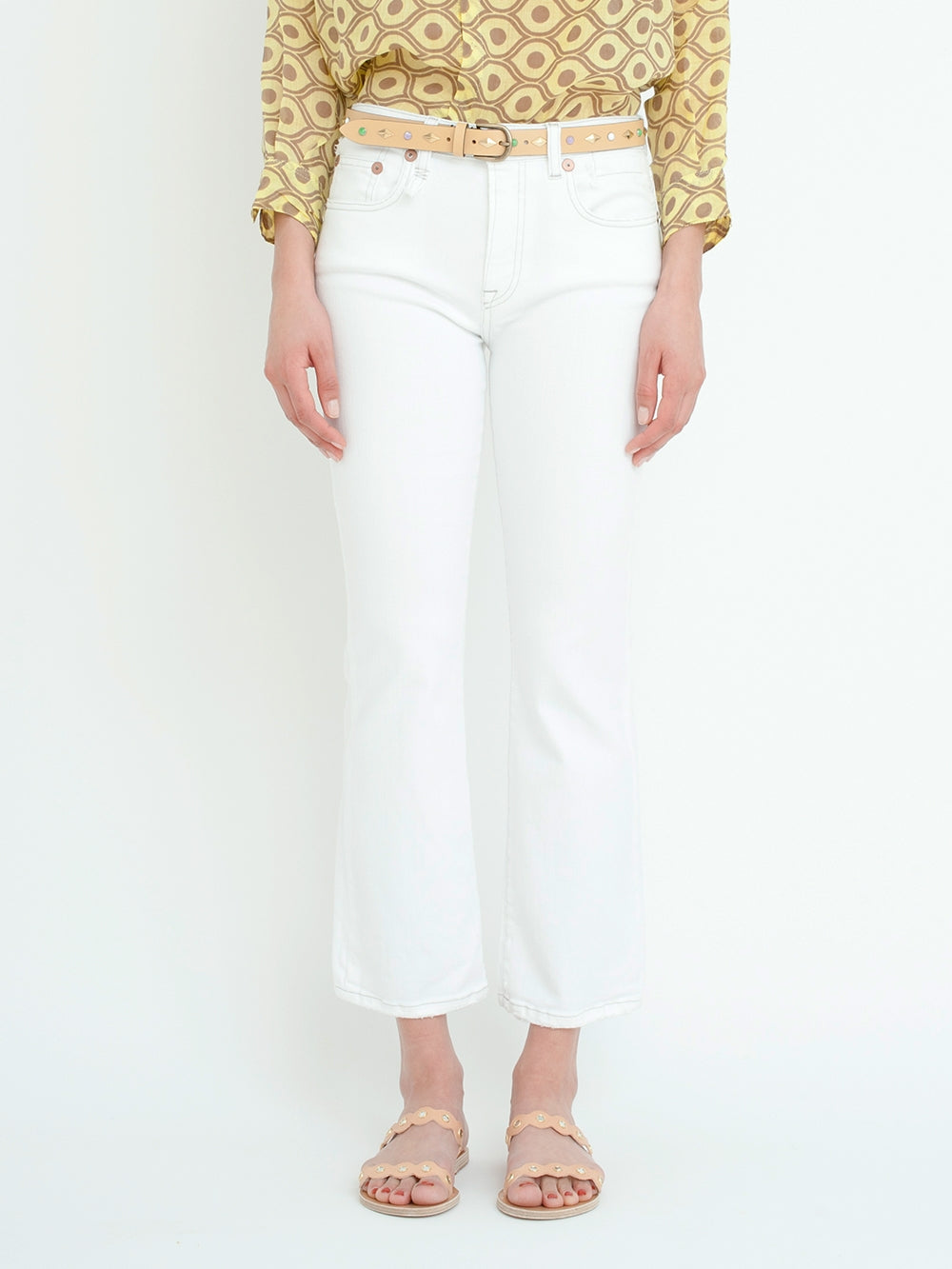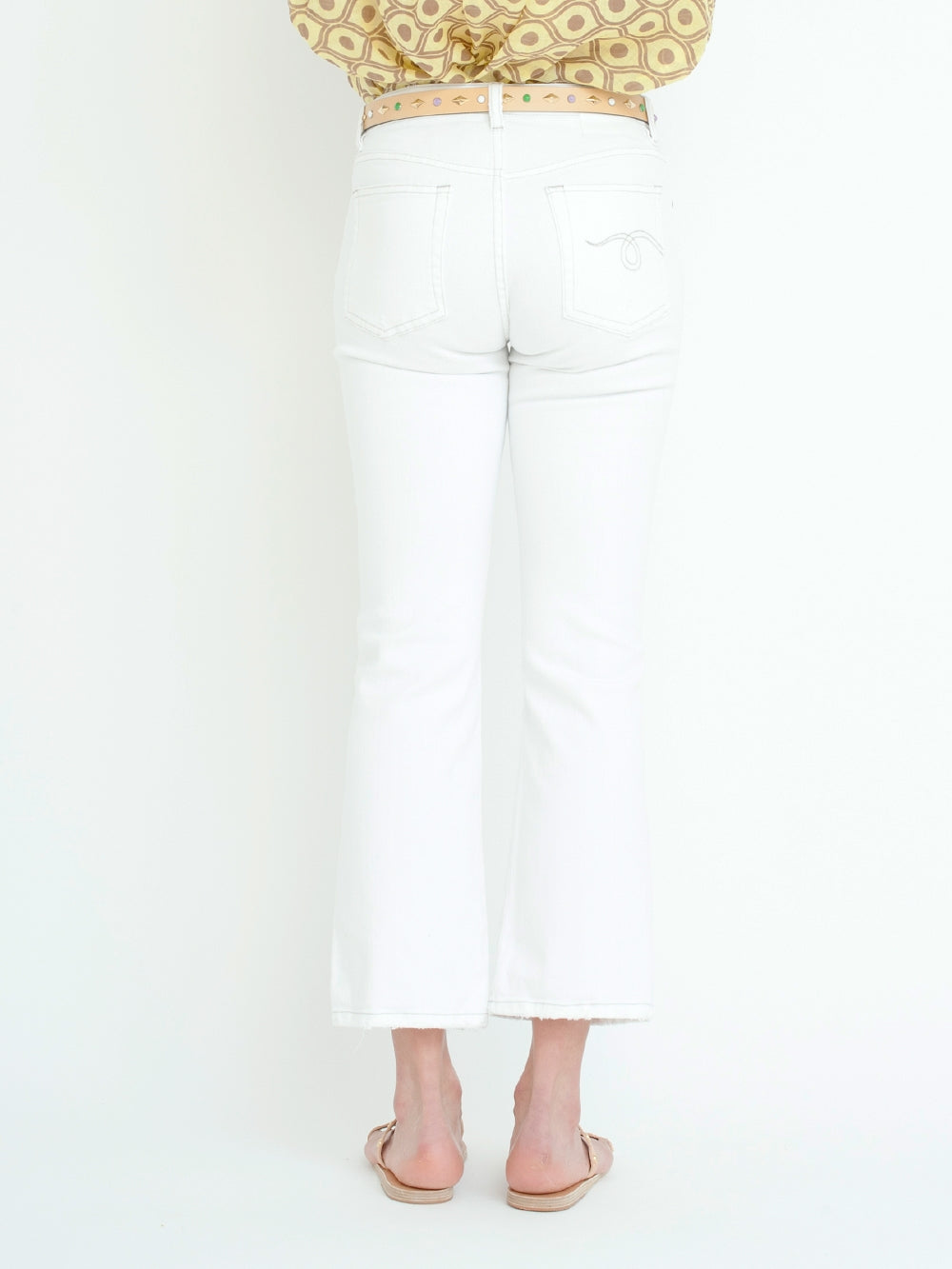 R13 Kick fit jean. These mid-rise jeans in white denim have a cropped and slightly flared cut.