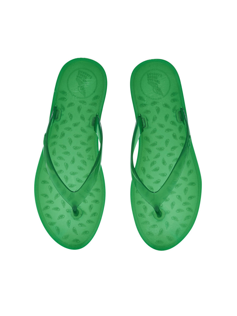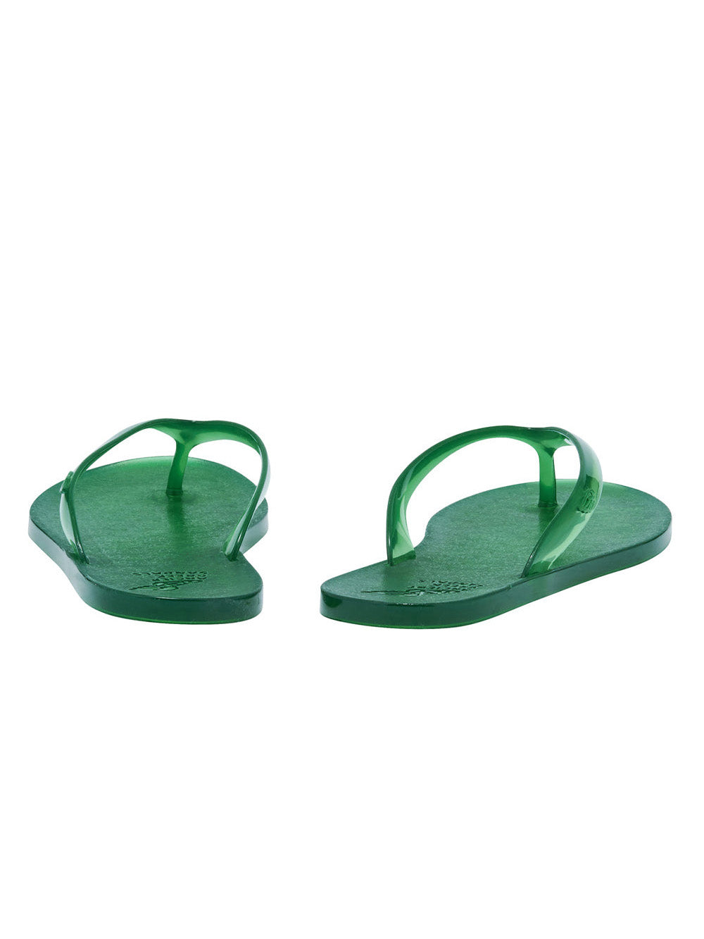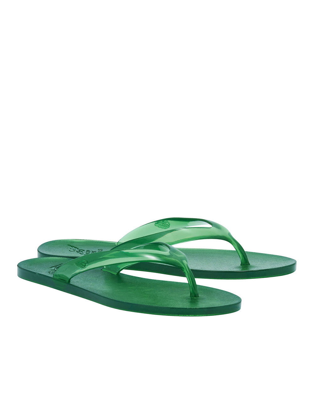 Jelly flip-flops by Ancient Greek Sandals, crafted from translucent green PVC. A comfortable pair of flip-flops, a summer wardrobe classic.