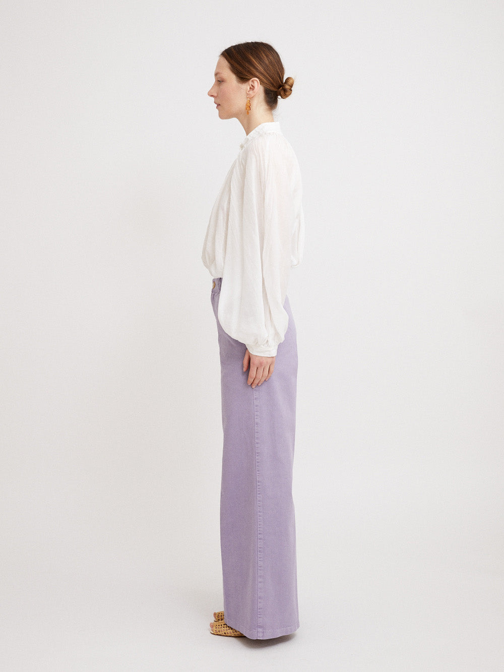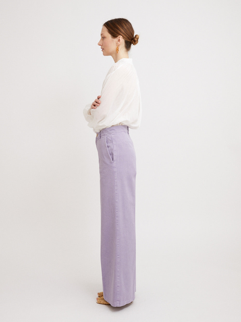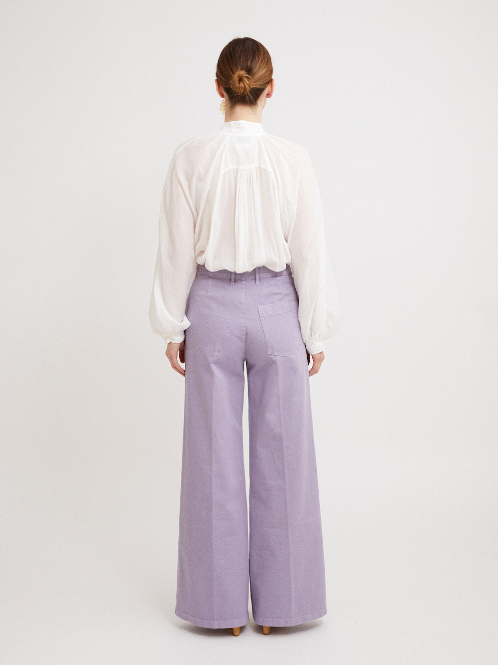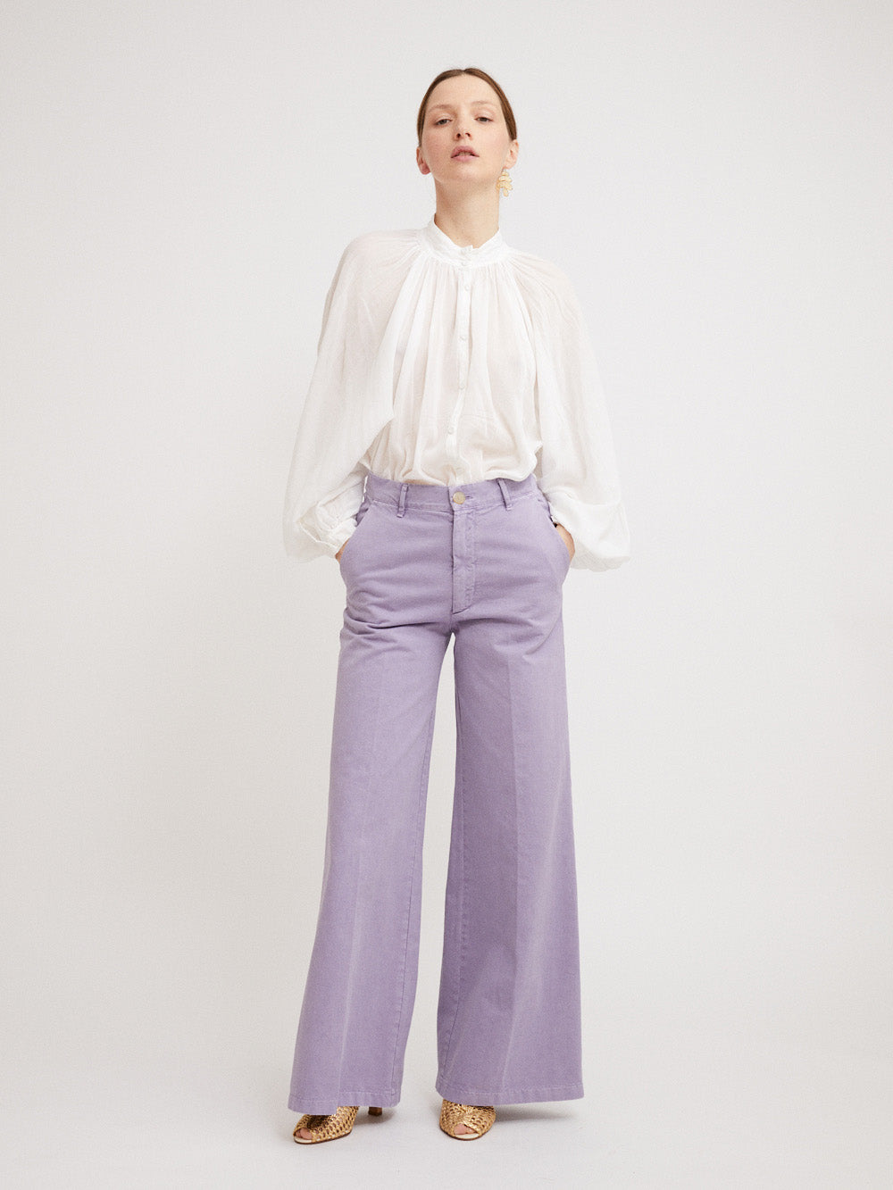 These Old Peach pants signed Forte_Forte are made of lavender cotton gabardine. A piece with a fresh and fashionable color.