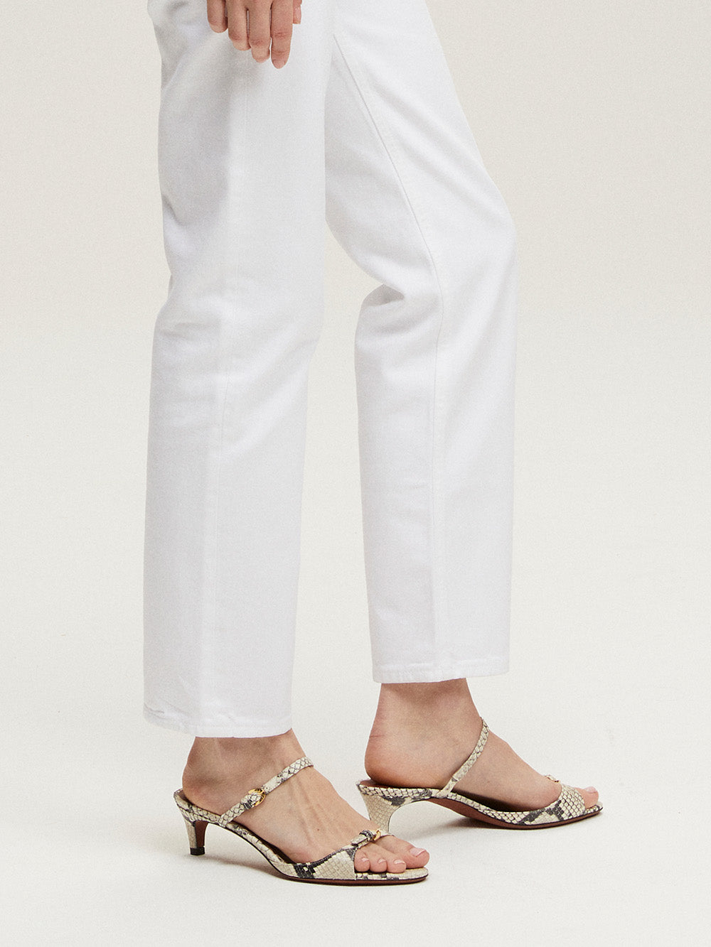 The Capricciosa Snake Print by A Di Gaeta is crafted from faux-snake Italian nappa leather. A glamorous pair of sandals inspired by the 1990s.