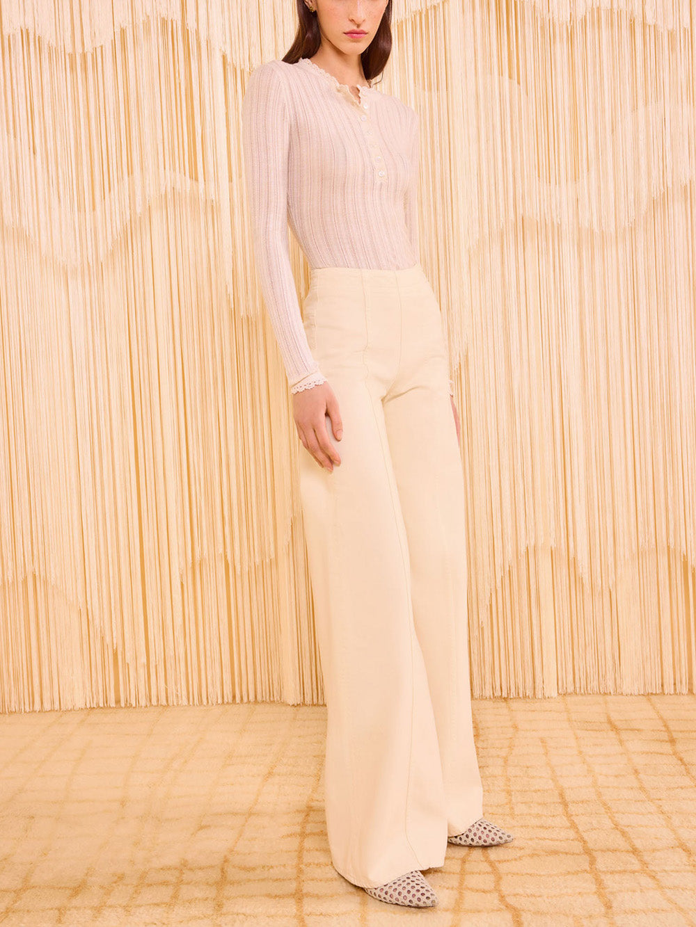 Ulla Johnson's The Bianca Danube jeans are handcrafted in Los Angeles from premium cream denim. Wide-leg jeans with a Hollywood high waist for a chic look.