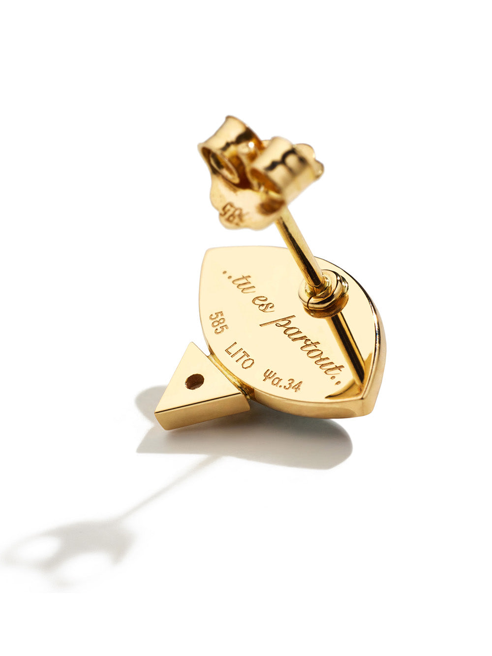 Lito's Petit Vert earring is crafted from 14-carat yellow gold and features a blue eye enamel design. The earring is finished with a small brilliant-cut diamond.
