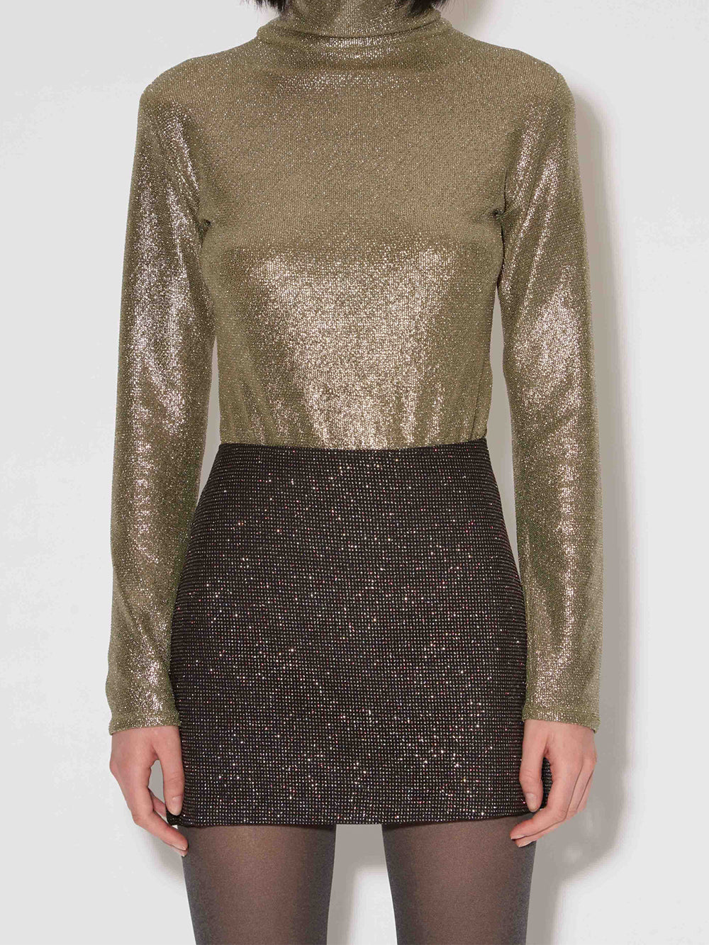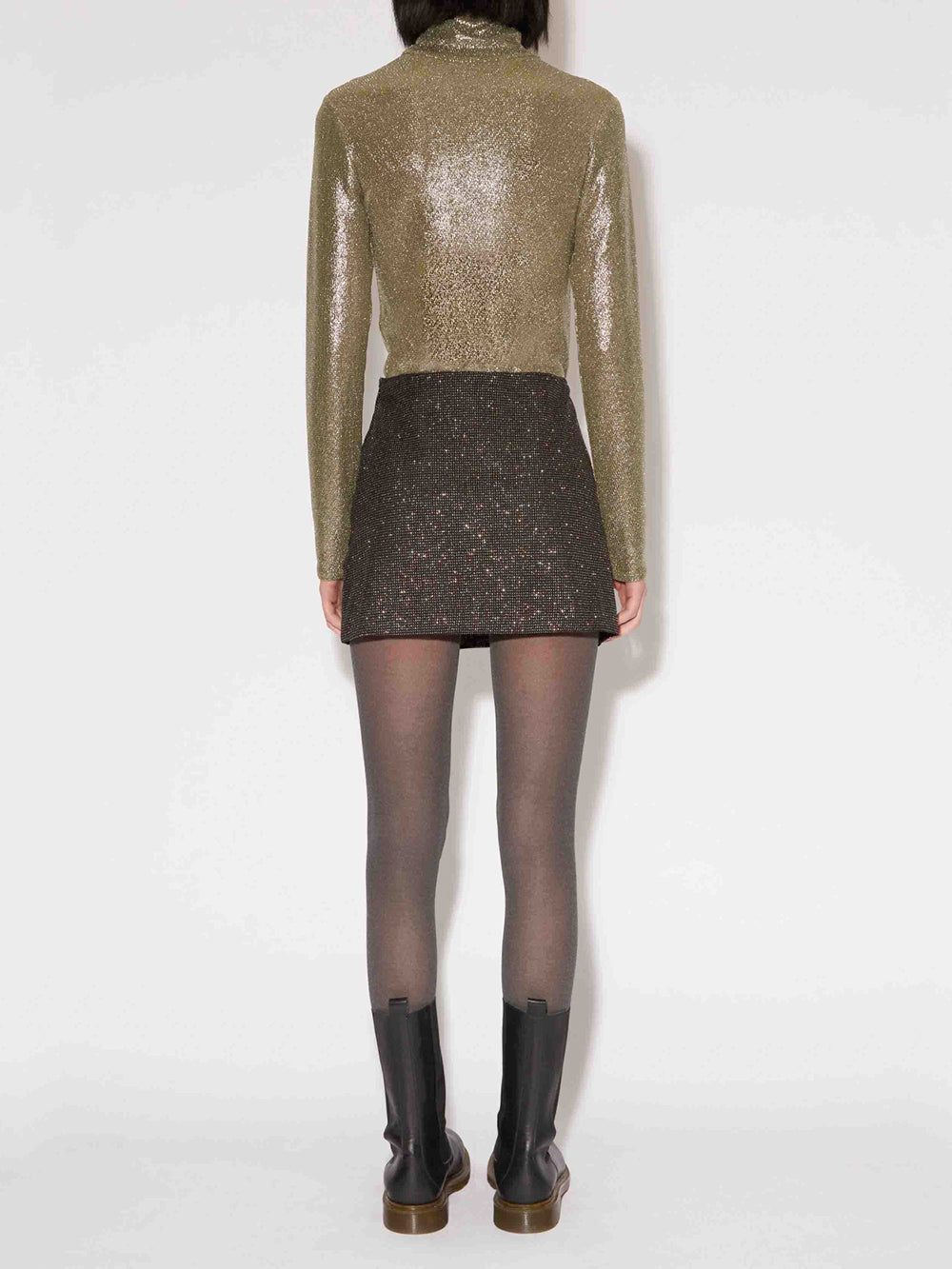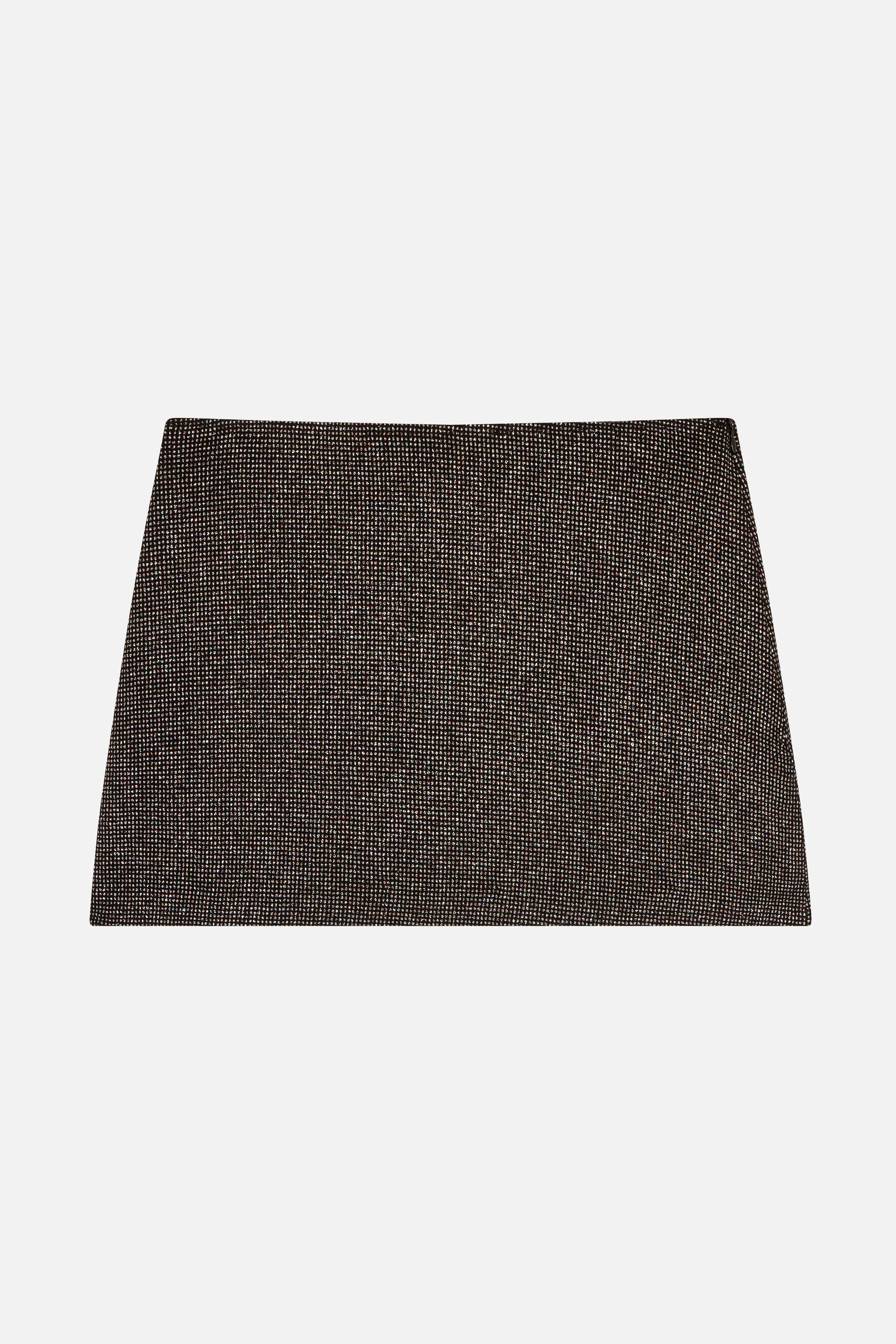 Roseanna's short Night skirt is made from a black sequined veil.