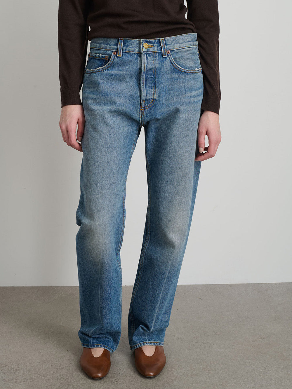 Tilda jeans in Jane by B Sides, made from 14oz cotton canvas in natural indigo. A loose, straight fit with a mid-rise waist. This piece is designed in New York and responsibly made in Los Angeles.