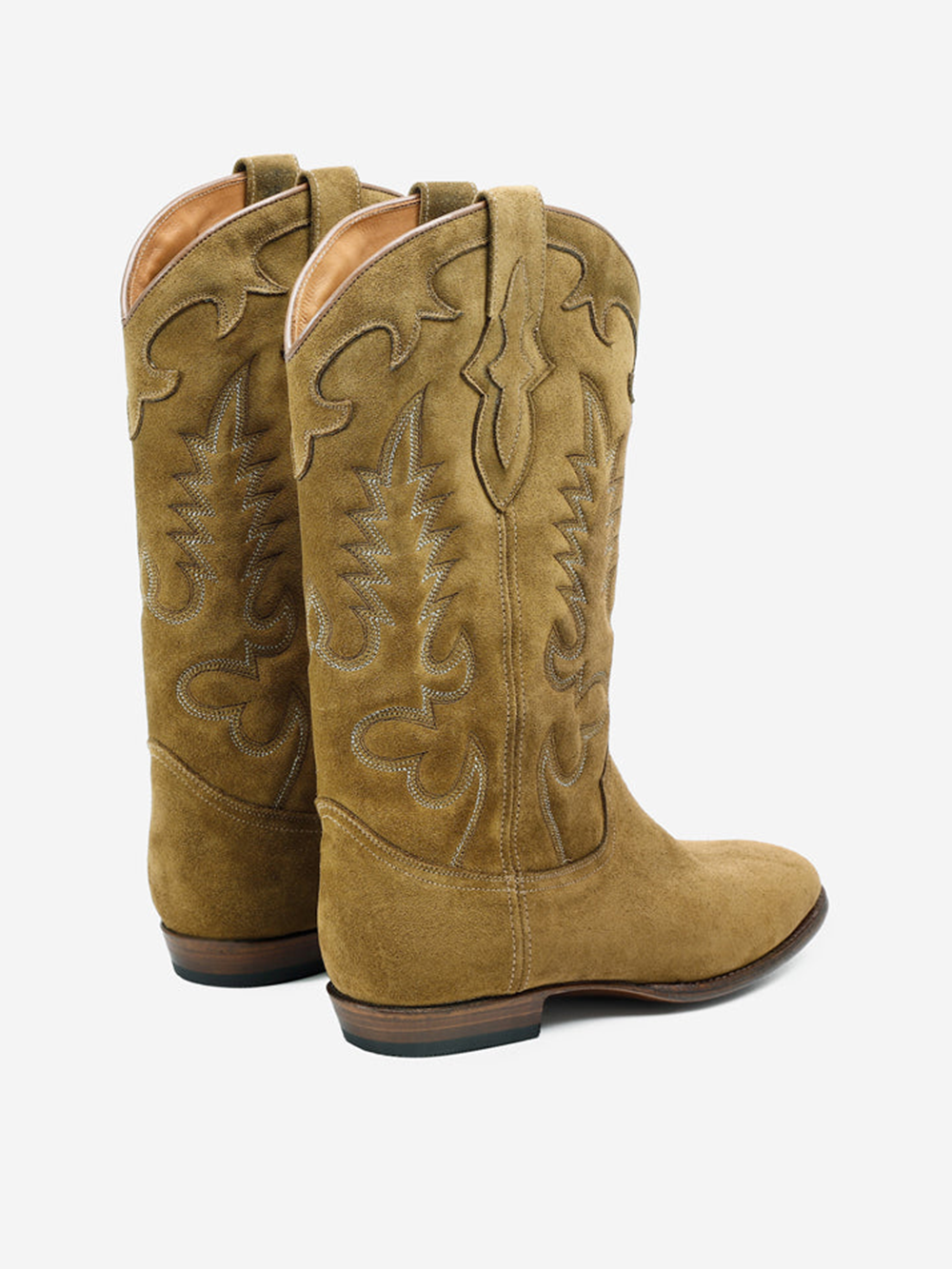 These Shiloh Heritage suede Santiago boots are made entirely by hand In Spain in a traditional and family workshop .