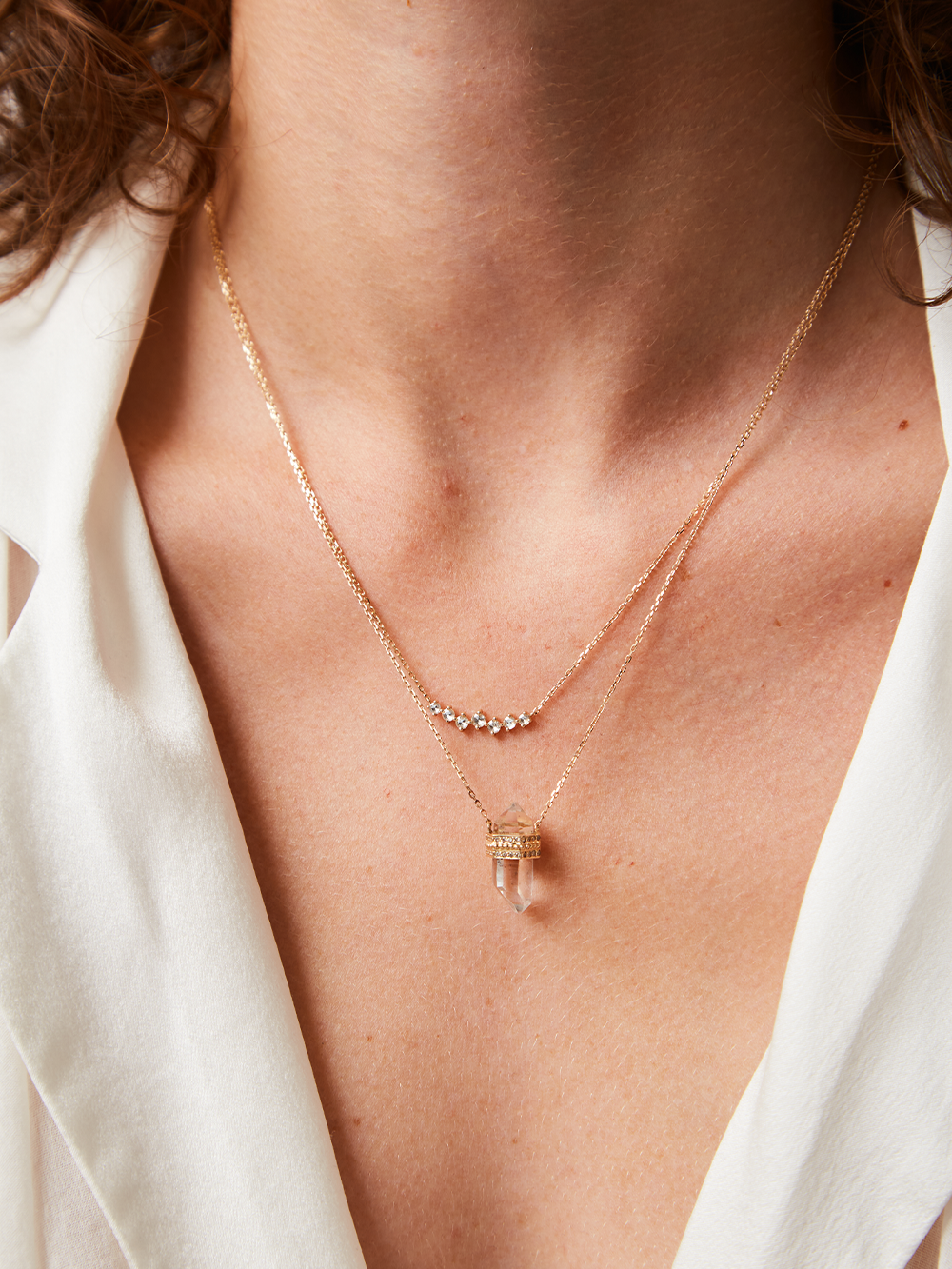 Twisted necklace by Céline Daoust made with 7 rose cut diamonds mounted on 14 carat yellow gold. A delicate diamond necklace, symbols of purity and spiritual power.