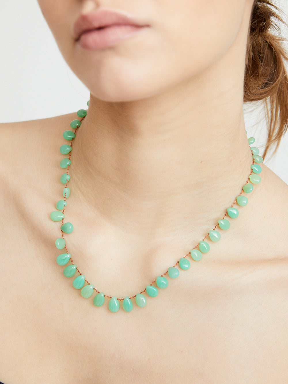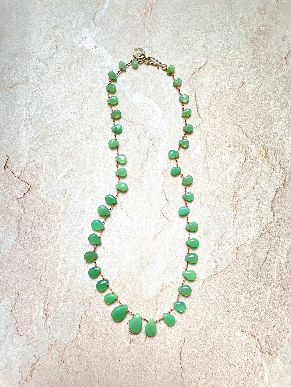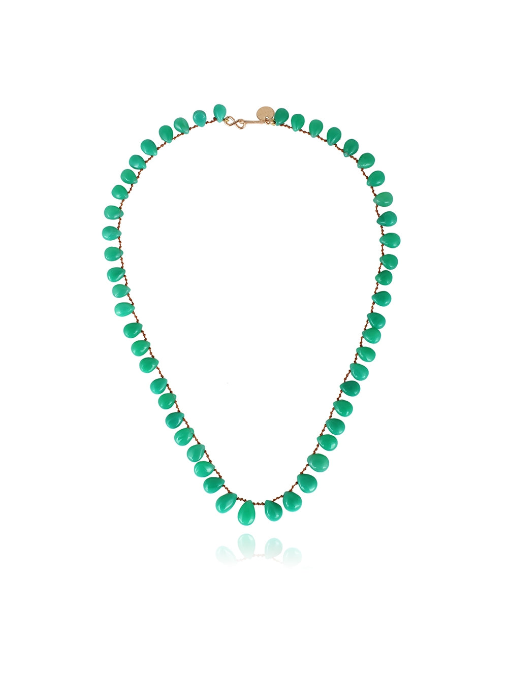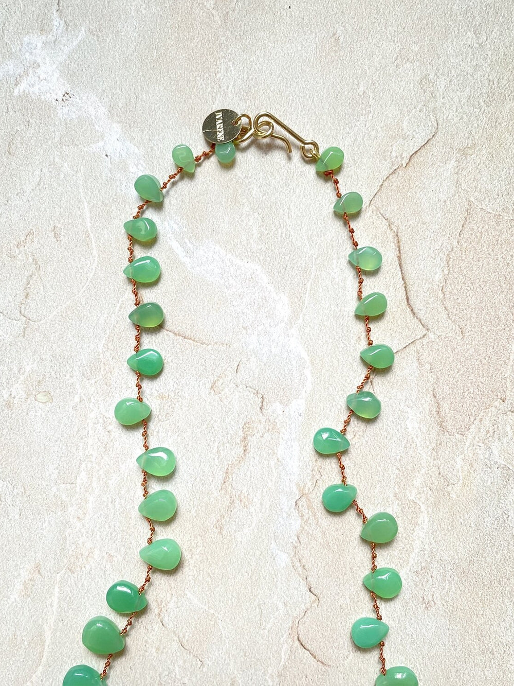 Collier Evergreen Chrysoprase Ivarene. Chaque pièce est unique et faite à la main à Paris. La Chrysoprase est une pierre connue pour ses vertus énergétiques.