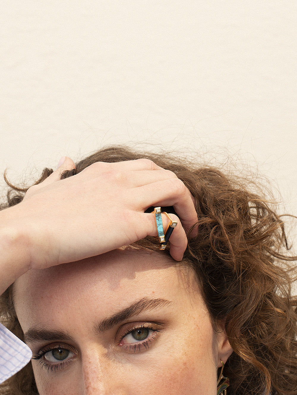 Bague Villa Eileen turquoise Yv. Delloye x BY MARIE. Ce bijou est une pièce unique, entièrement réalisée à la main dans l'atelier de joaillerie parisien de la maison.