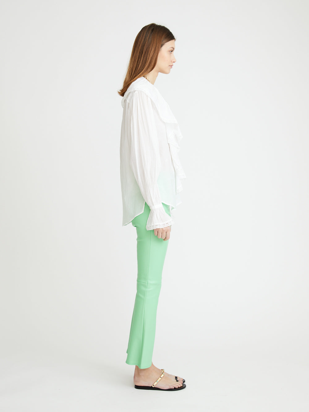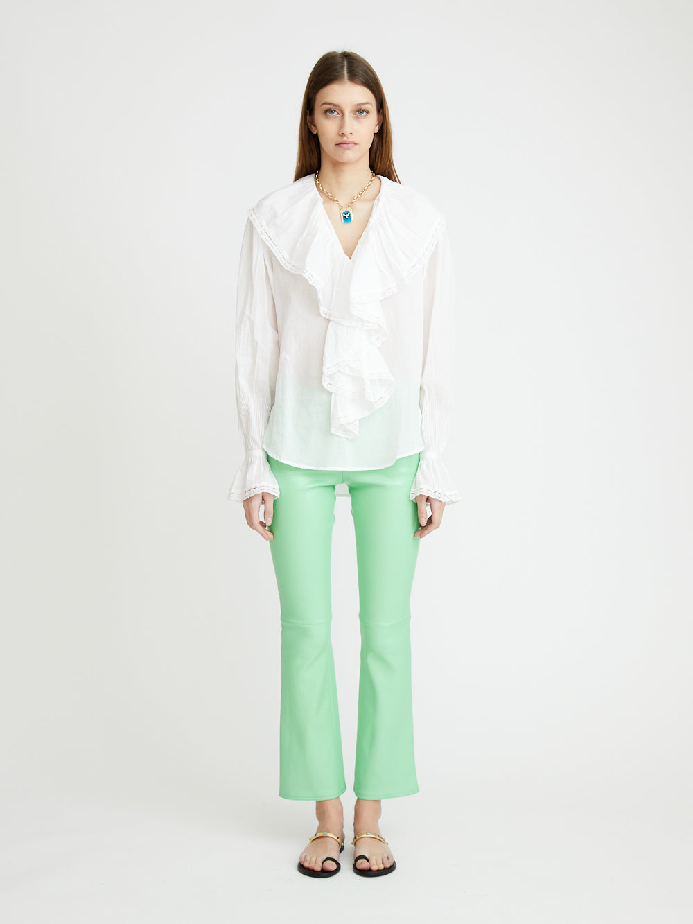 La chemise Poppi signée Jane Gustavsson est confectionnée dans un voile de coton biologique. Cette blouse est brodée sur toutes les bordures, elle offre une coupe droite et légère avec des fentes sur les côtés. Elle se compose de manches longues volantés, de poignets froncés, d'une encolure à jabot boutonnée et d'une allure légèrement transparente.