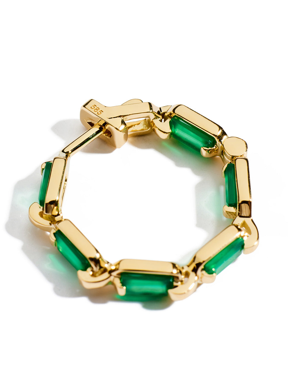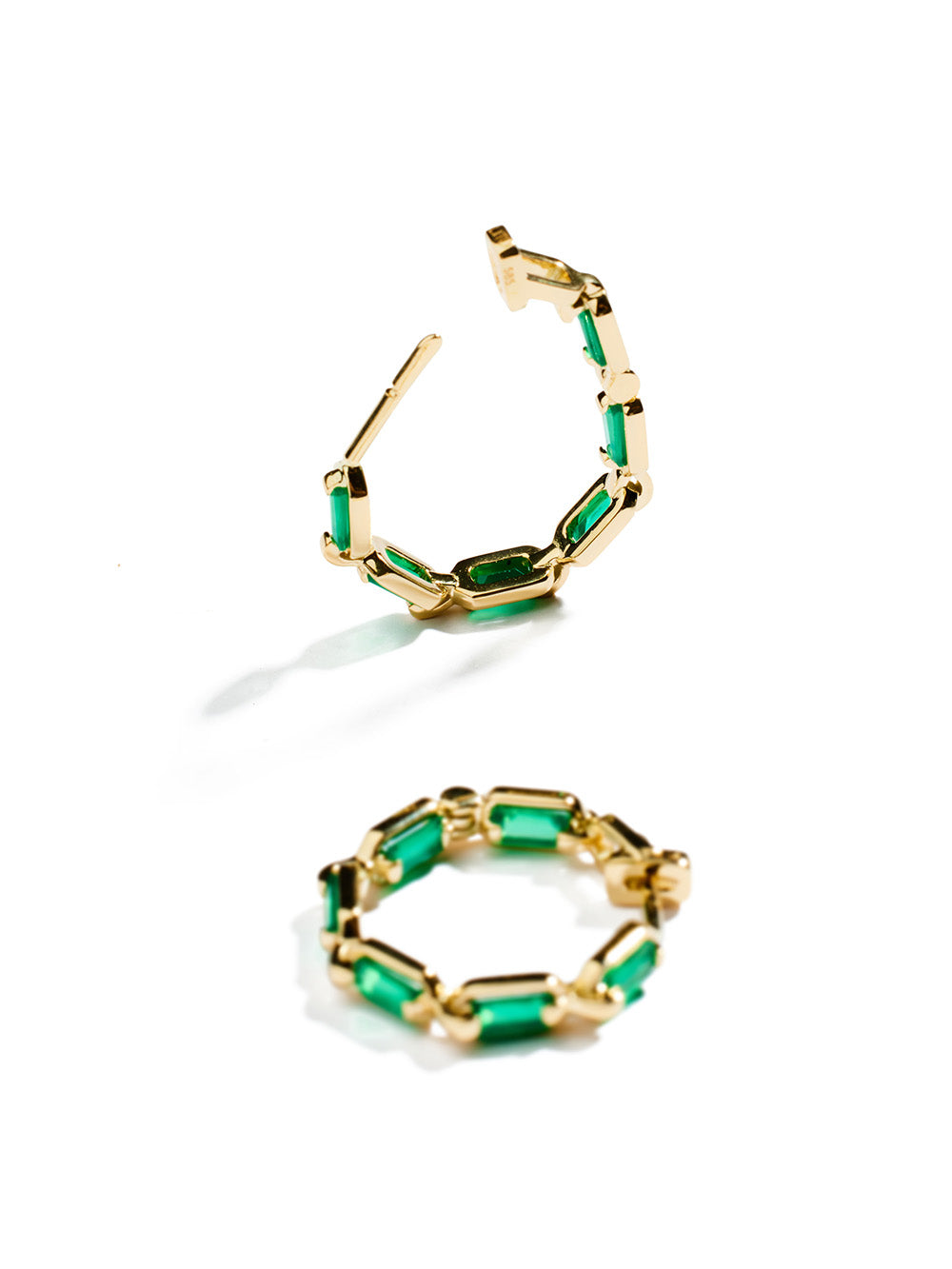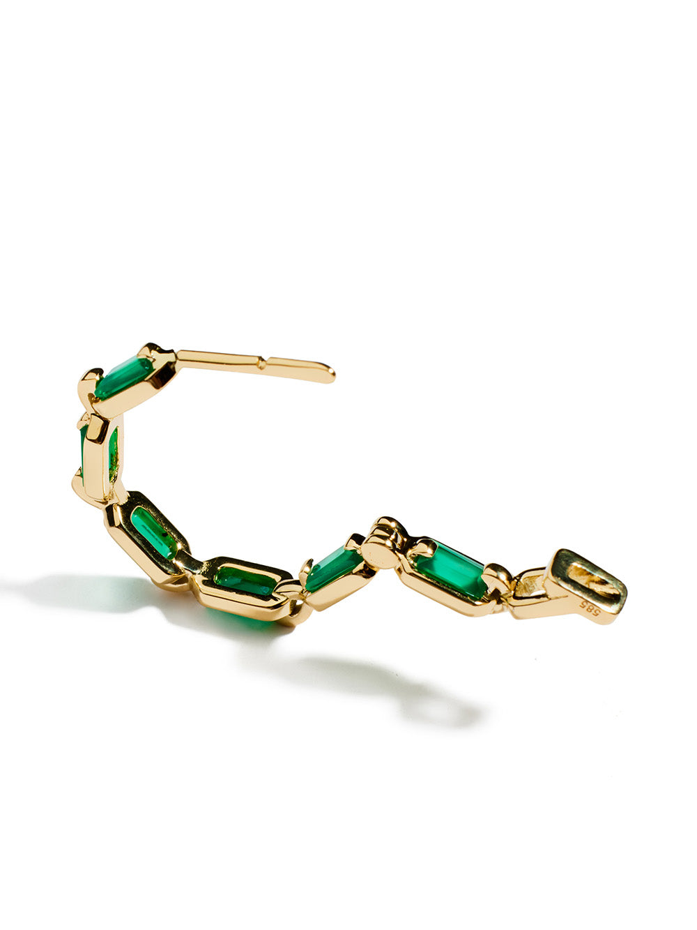 Boucles d'Oreilles Generosity signées Lito confectionnées en or jaune 14 carats serti d'agathes vertes taille baguette. Un design inspiré des chaînes de bijouterie.