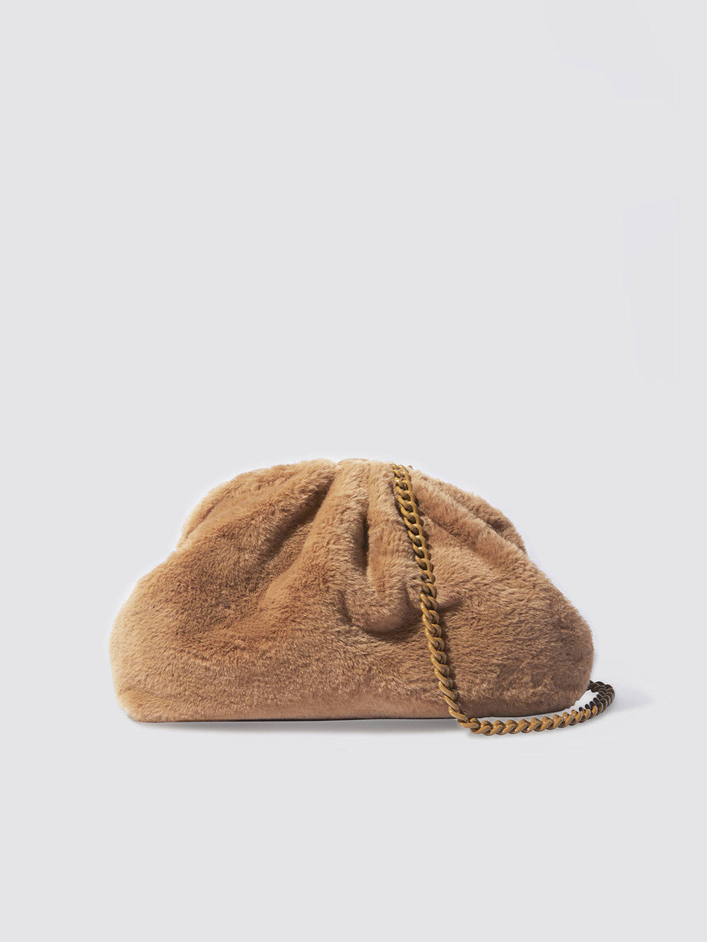 Sac Game Nita signé Maria La Rosa confectionné dans une fausse fourrure de couleur beige. Une nouvelle interprétation de l'emblématique sac Game de la marque.