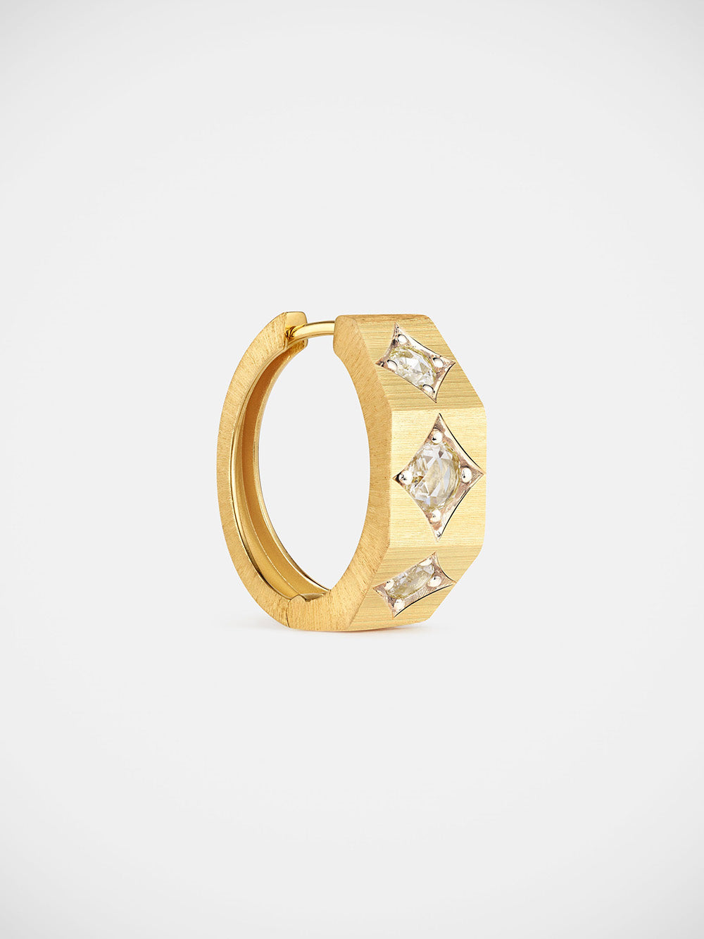 Boucle d'Oreille Ecrou Coco signé Marie Lichtenberg confectionné en or jaune brossé 18 carats. Une petit anneau de forme octogonale inspiré des écrous. - Diamètre : 1,8cm - Pièce garantie 2 ans à compter de la date d’achat sur présentation de la facture - Envoyé dans un écrin de joaillerie avec certificat d'authenticité