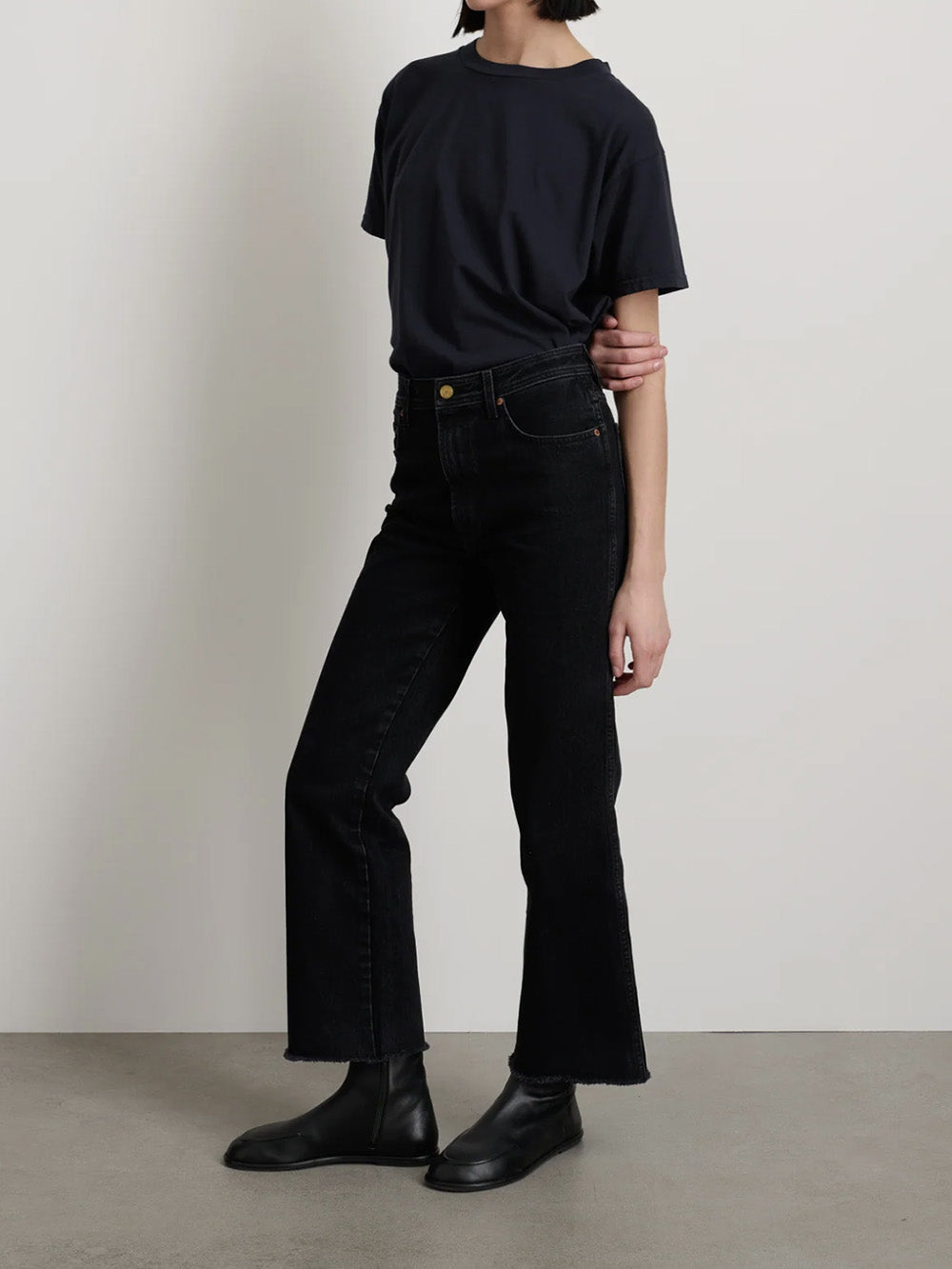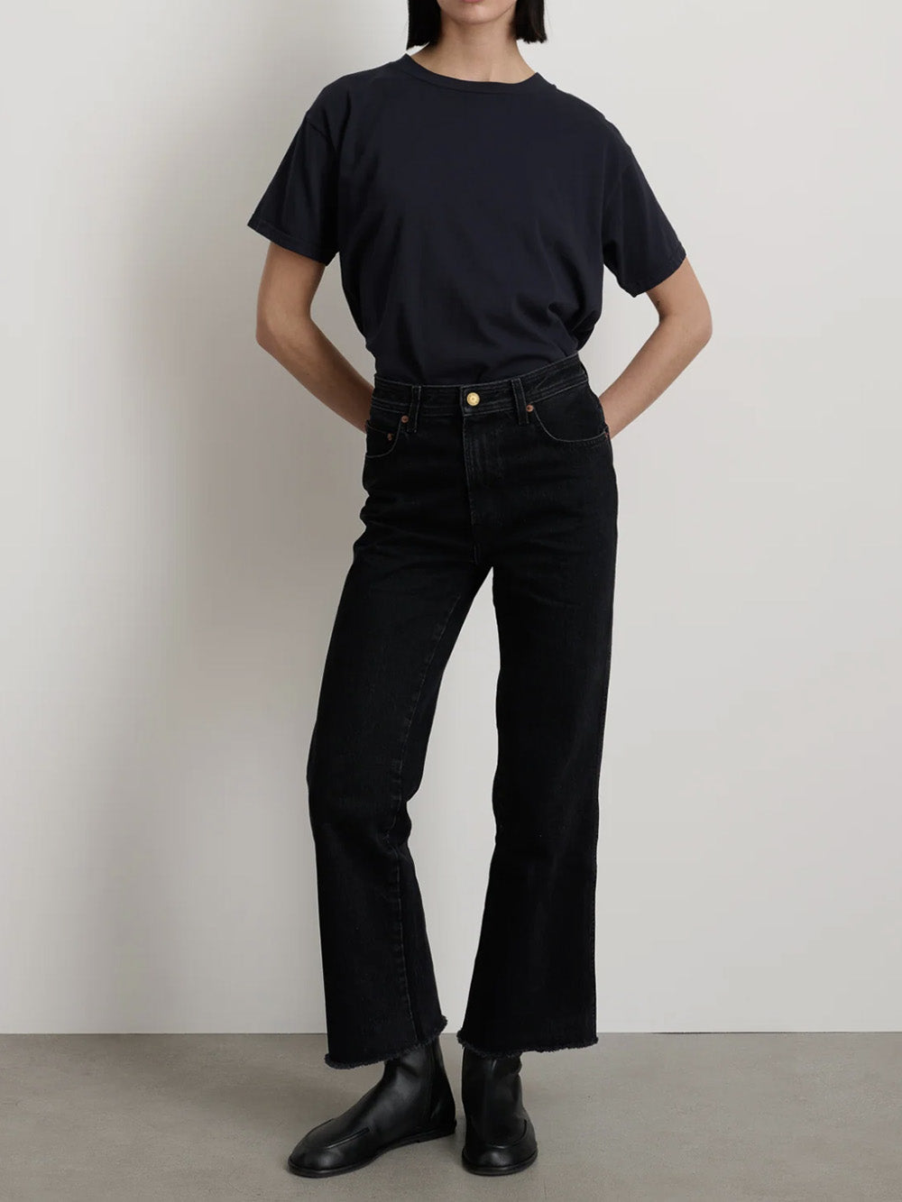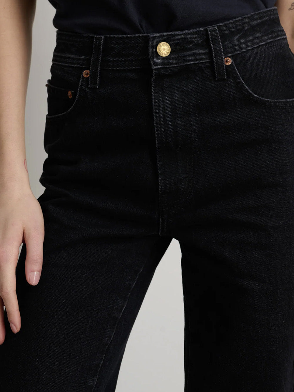 Le jean Eshel High Boot de la marque BSIDES en noir Stone Wash a une coupe flatteuse et décontractée.