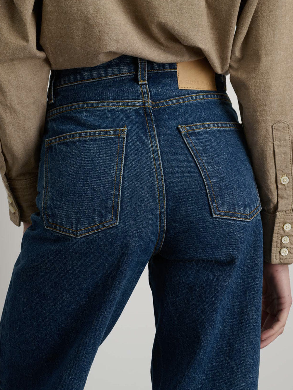Ce jean Elissa High Wide coloris Coco Wash réalisé par B SIDES est fabriqué aux Etats-Unis.