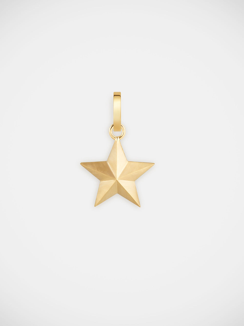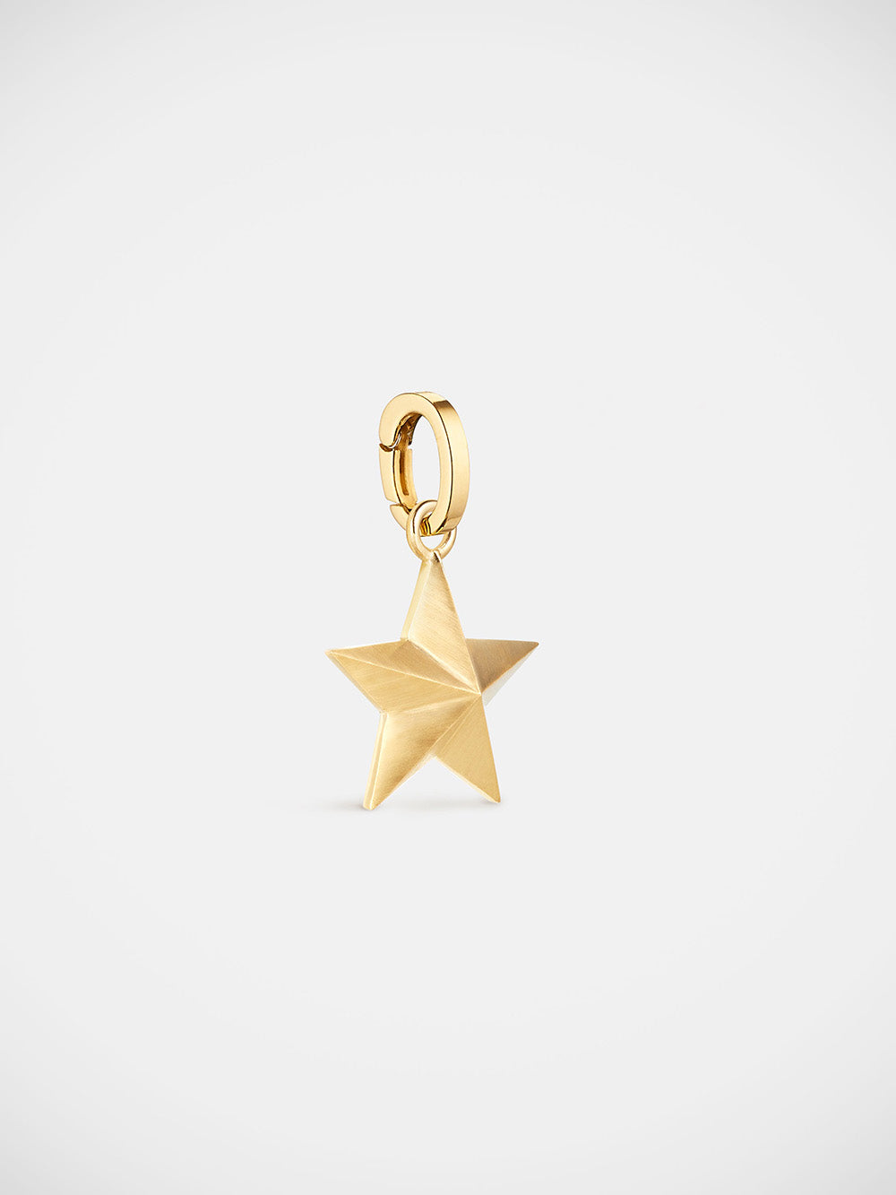 Charm Étoile Petit Modèle signé Marie Lichtenberg confectionné en or jaune 18 carats à finition brossée. Un petit charm en relief vendu avec une bélière et un anneau pour être porté en pendentif ou en boucle d'oreille. - Or jaune 18 carats - Poids or : approx. 2.2 grammes - Dimensions : 20mm x 20mm - Vendu avec un écrin de joaillerie - Certificat d’authenticité est fourni avec cette pièce - Collier est garanti 2 ans à compter de la date d’achat sur présentation de la facture