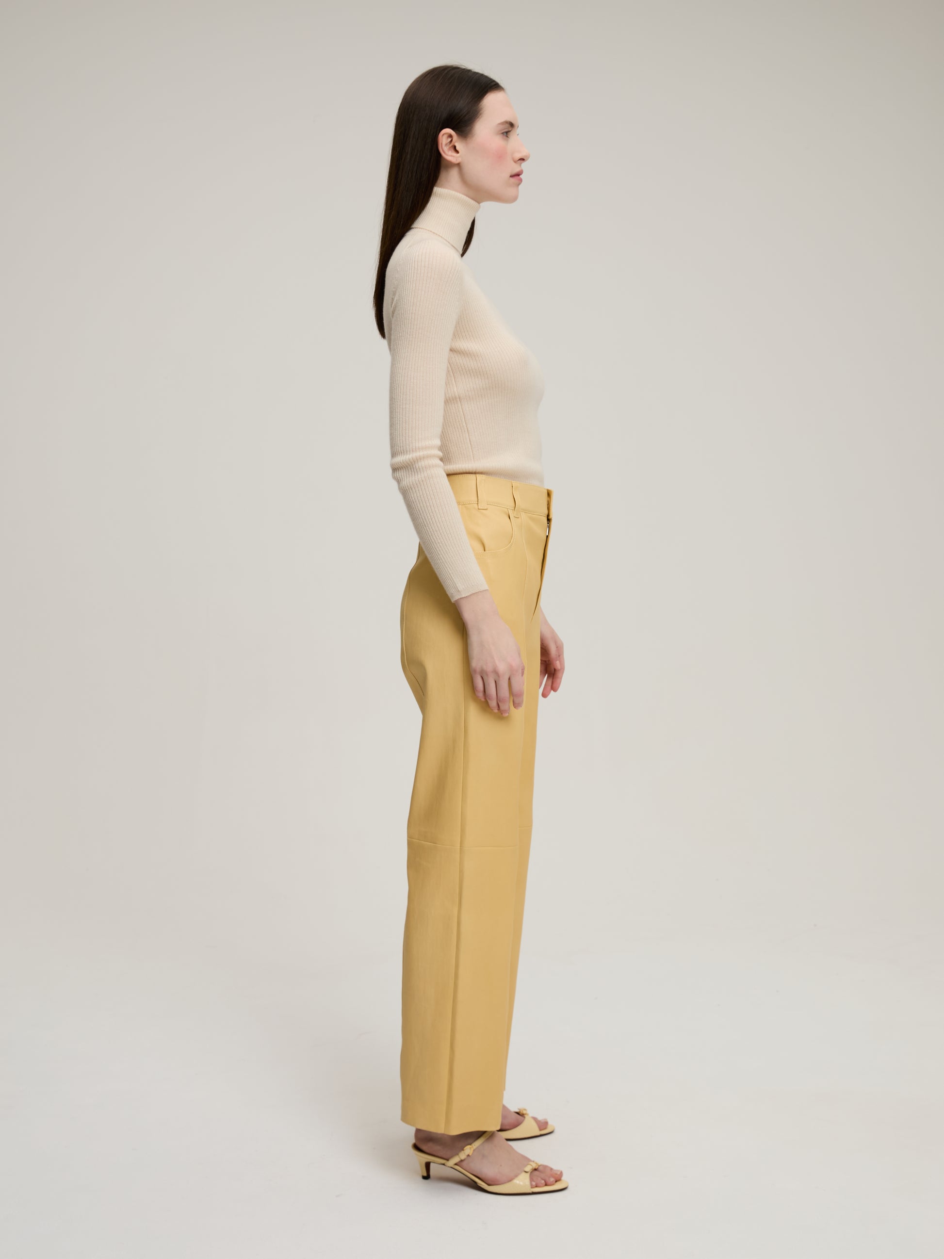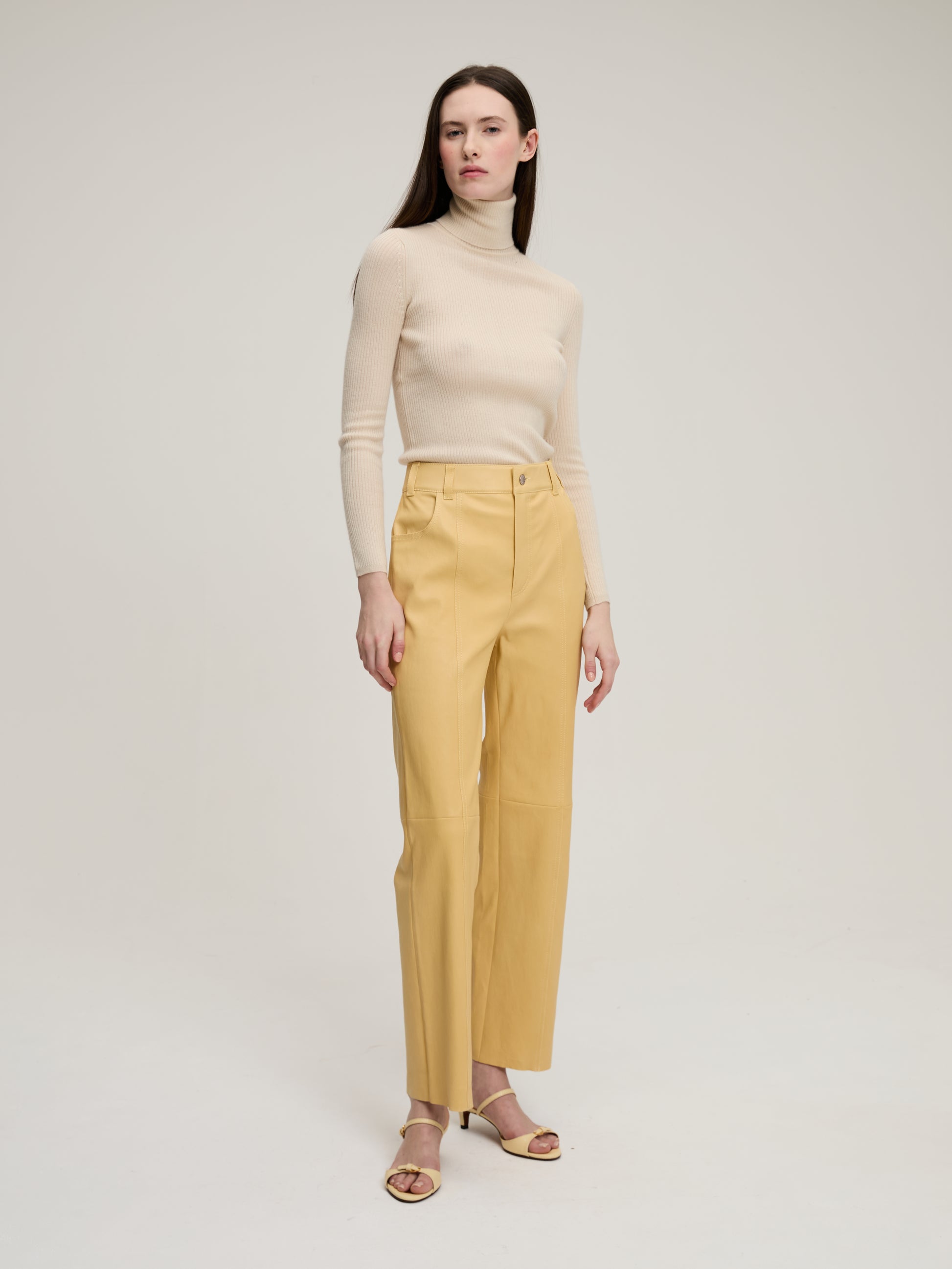 Col Roulé Léa Antique White signé BY Marie Collection confectionné en cachemire de couleur blanc cassé. Un pull en maille fine côtelée, près du corps, fabriqué dans un atelier au Népal mettant en avant le travail artisanal des femmes népalaise.