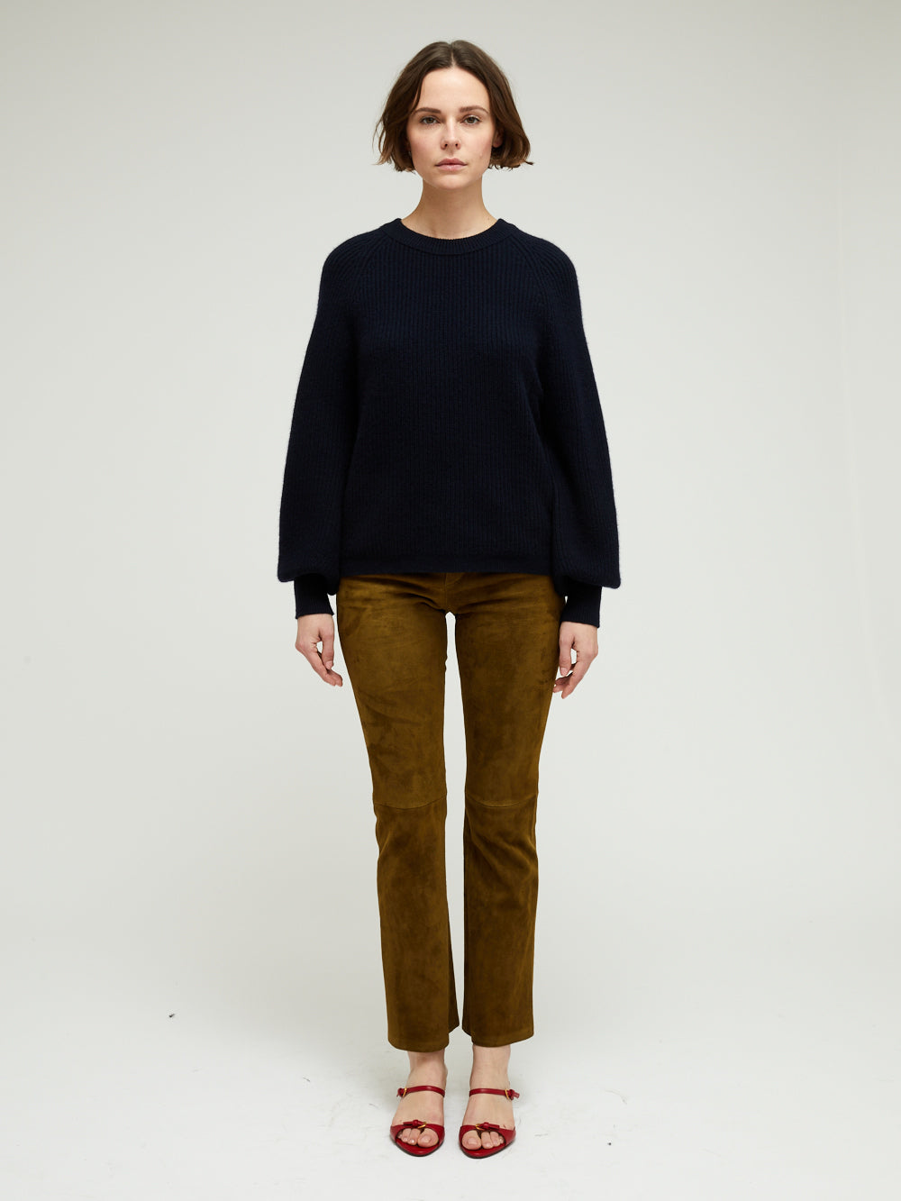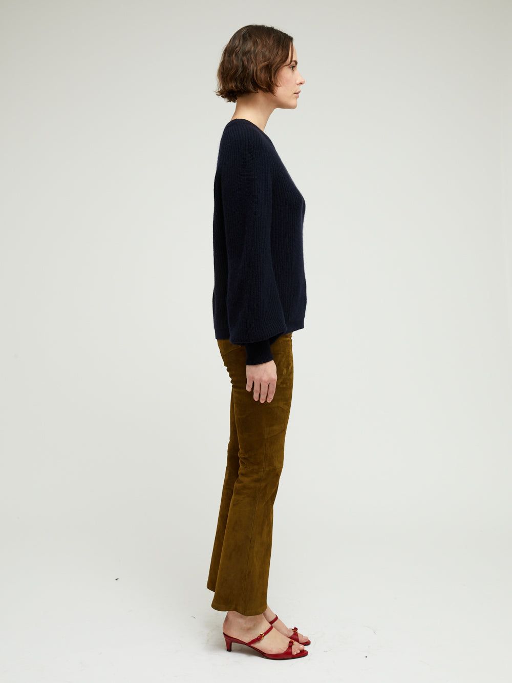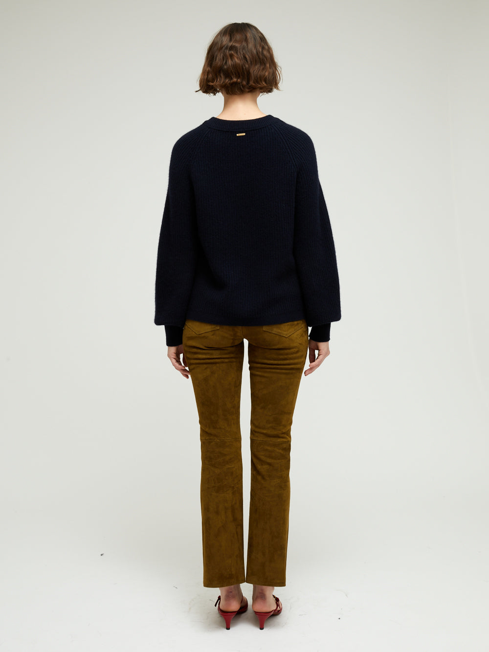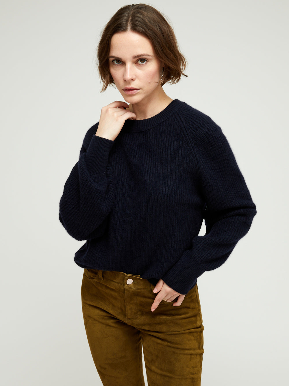 Pull Marlow BY MARIE Collection. Ce pull court en 100% cachemire 4 fils a des manches bouffantes resserrées au niveau des poignets. La pièce a un col rond à bord côtelé, une plaque dorée embossée du logo BY MARIE est cousue au dos du col. Le modèle existe en plusieurs coloris.
