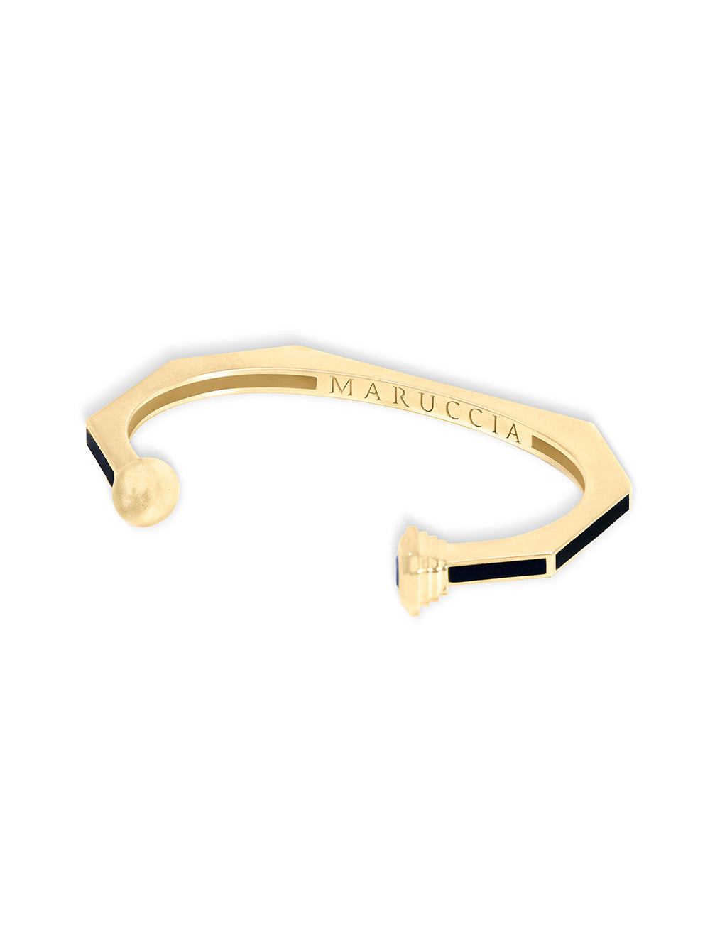 Bracelet Manchette 8 signé Maruccia confectionné en or jaune 18 carats. Une manchette aux extrémités asymétriques et en or effet givré.