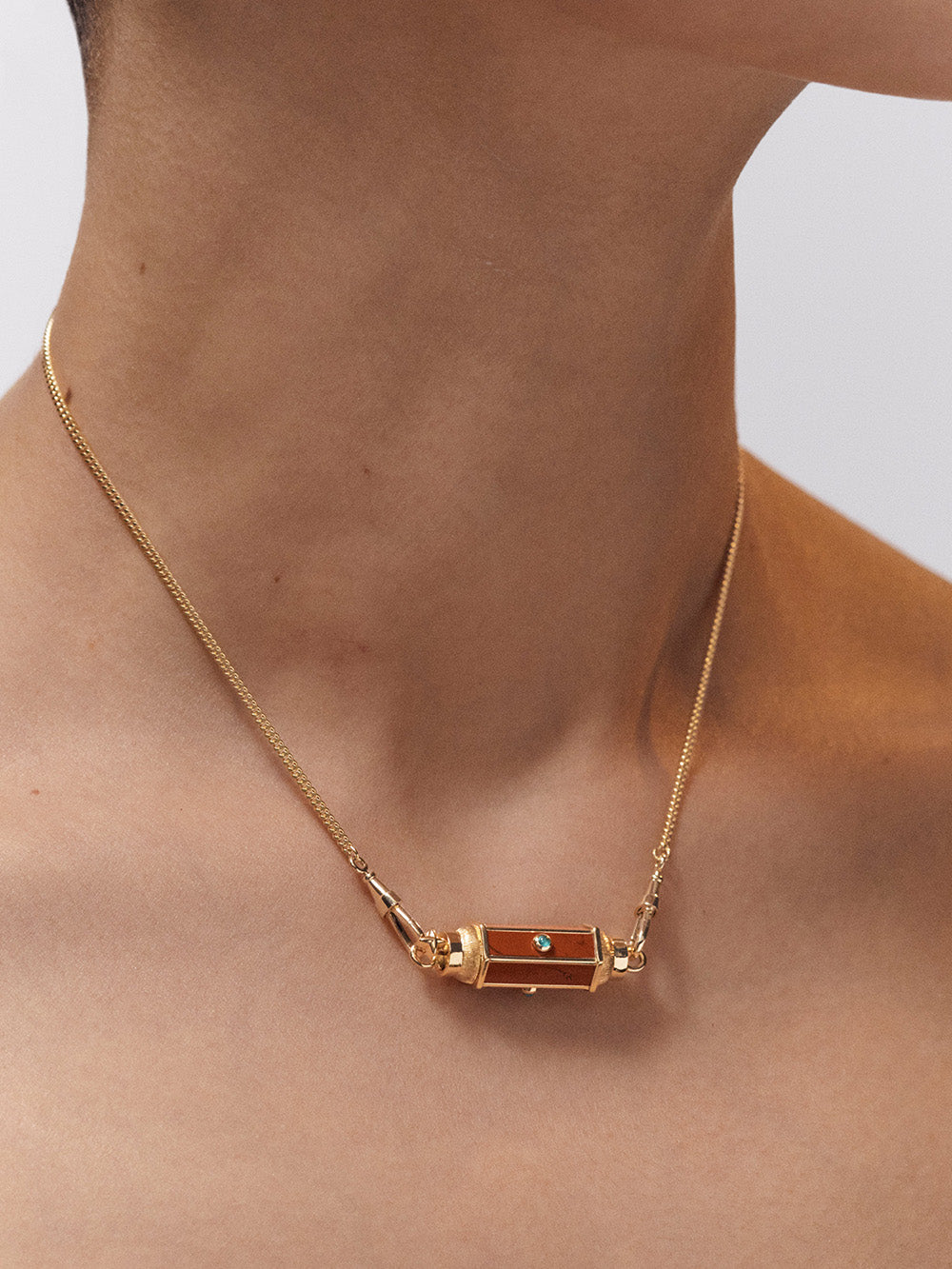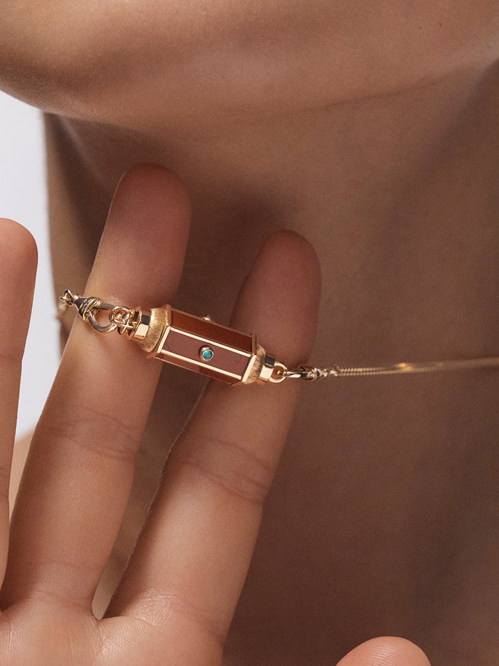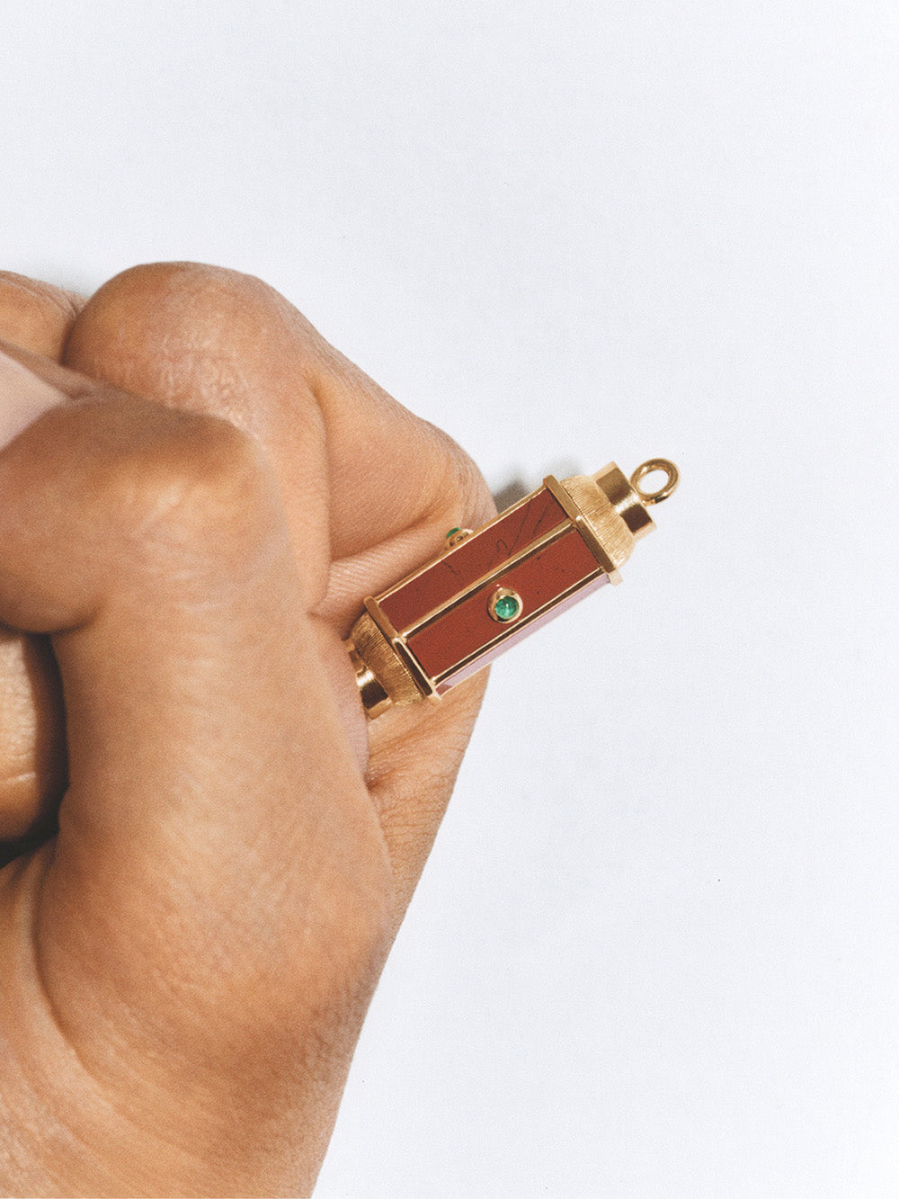 Baby Locket signé Marie Lichtenberg confectionné en or jaune 18 carats brossé sur les côtés. Un pendentif en jaspe rouge sertie d'émeraudes taille cabochon. - Émeraudes : 0.11 carat - Jaspe : 0.93 carat - Dimension du pendentif : 2,8cm x 1cm - Chaque pierre est unique ainsi, les détails sur la jaspe rouge peuvent varier d'une pièce à une autre. - Pièce garantie 2 ans à compter de la date d’achat sur présentation de la facture - Envoyé dans un écrin de joaillerie avec certificat d'authenticité