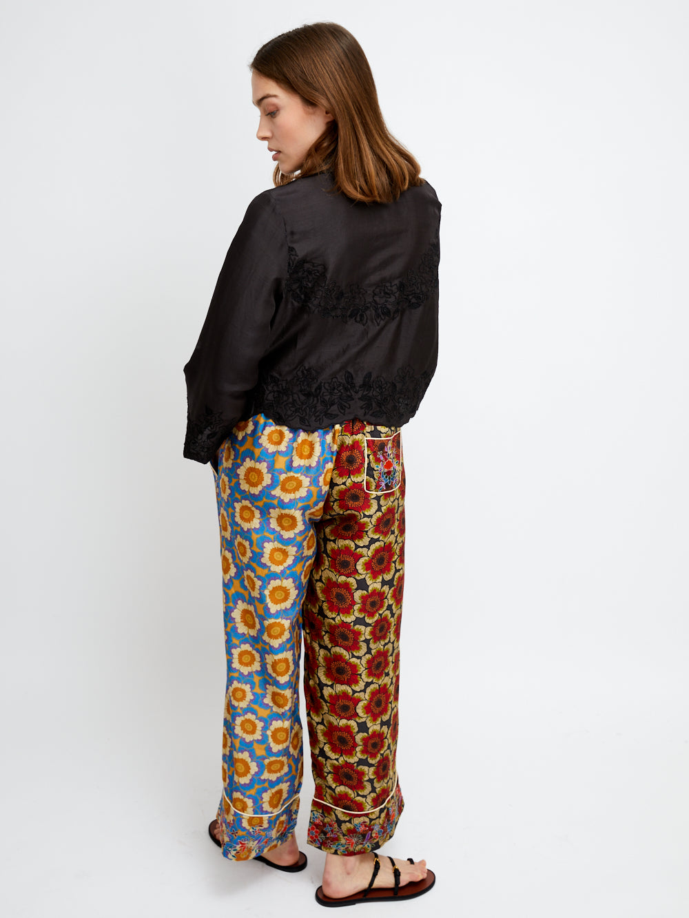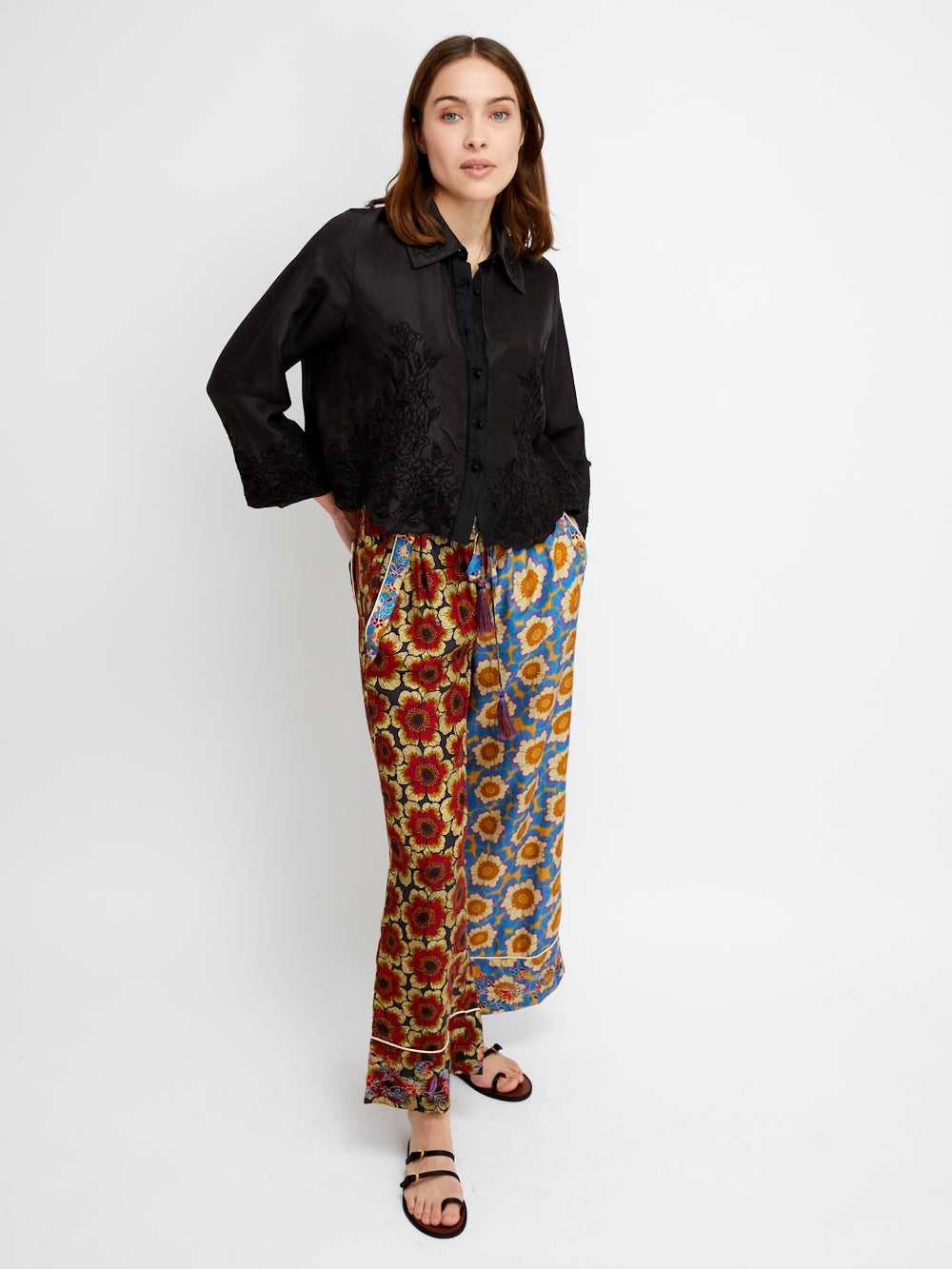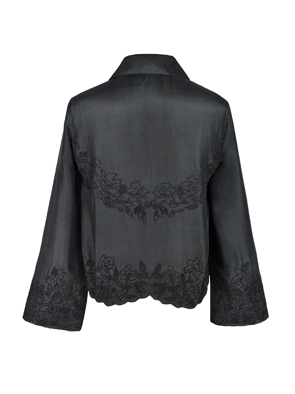 Chemise Cloud signée Monoki confectionnée en soie de couleur noire. Une chemise délicate et légère décorée de broderies florales ton-sur-ton.