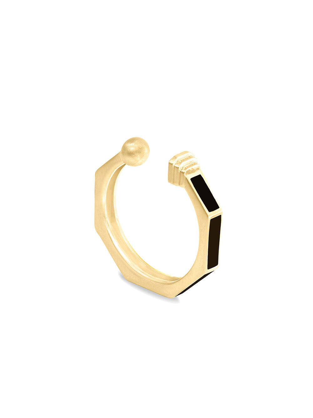 Bague 8 Phalanx Stellar signée Maruccia confectionnée en or jaune 18 carats. Une bague aux extrémités asymétriques et en or effet givré.