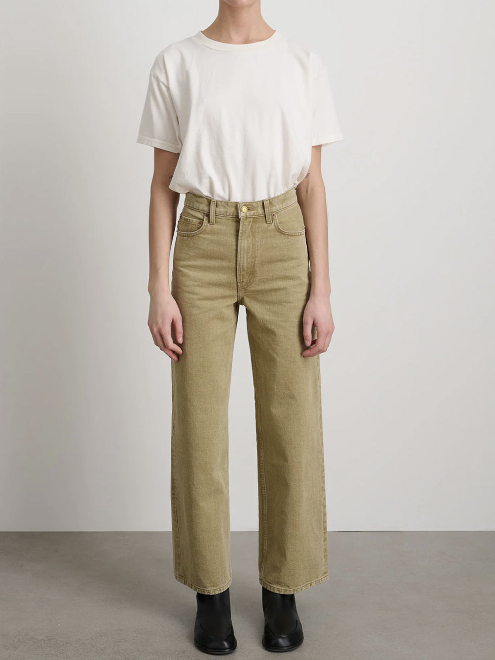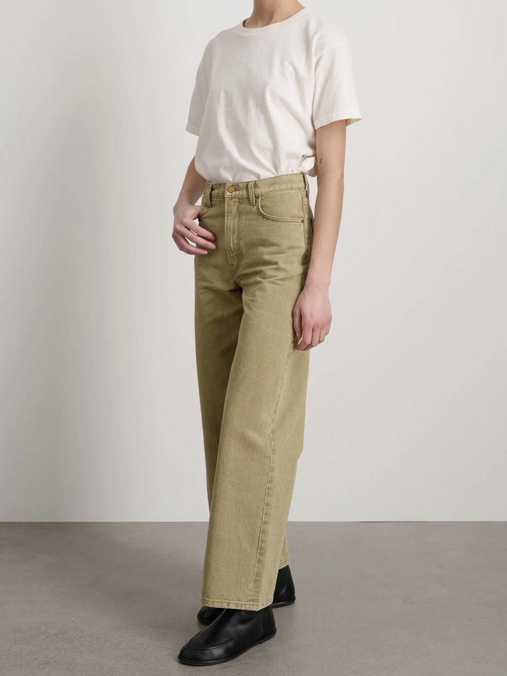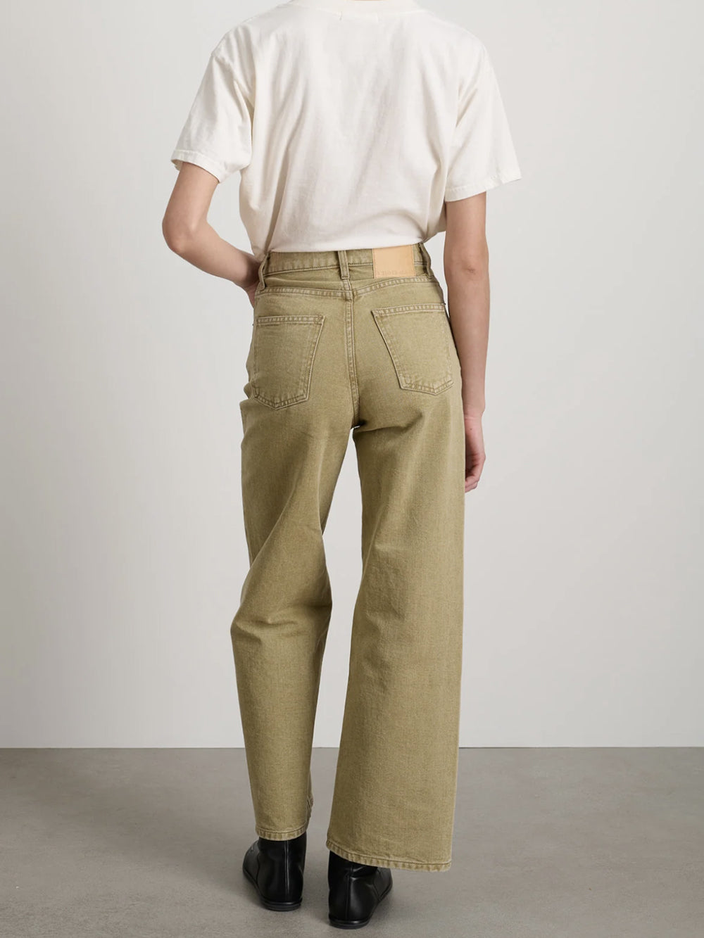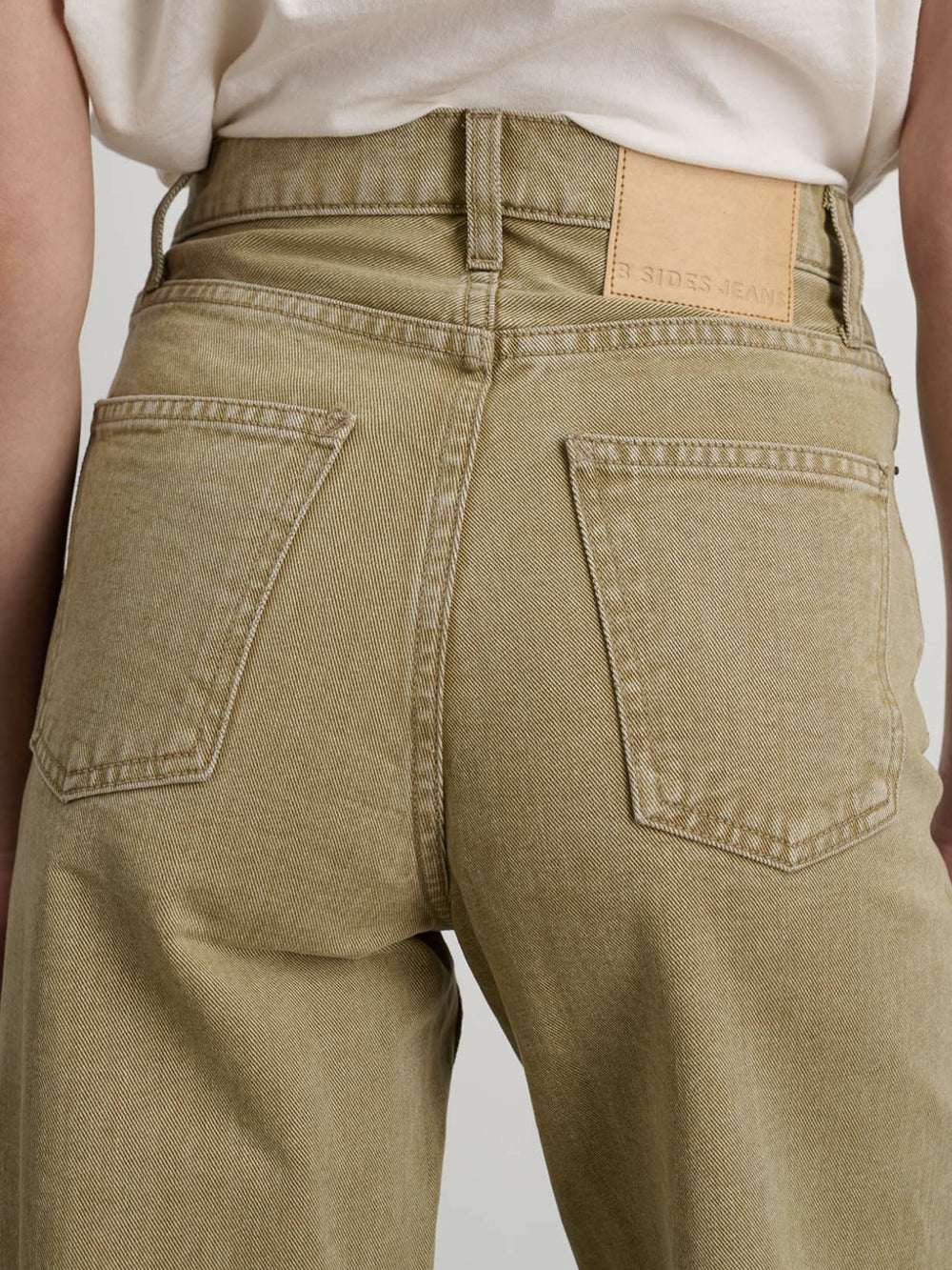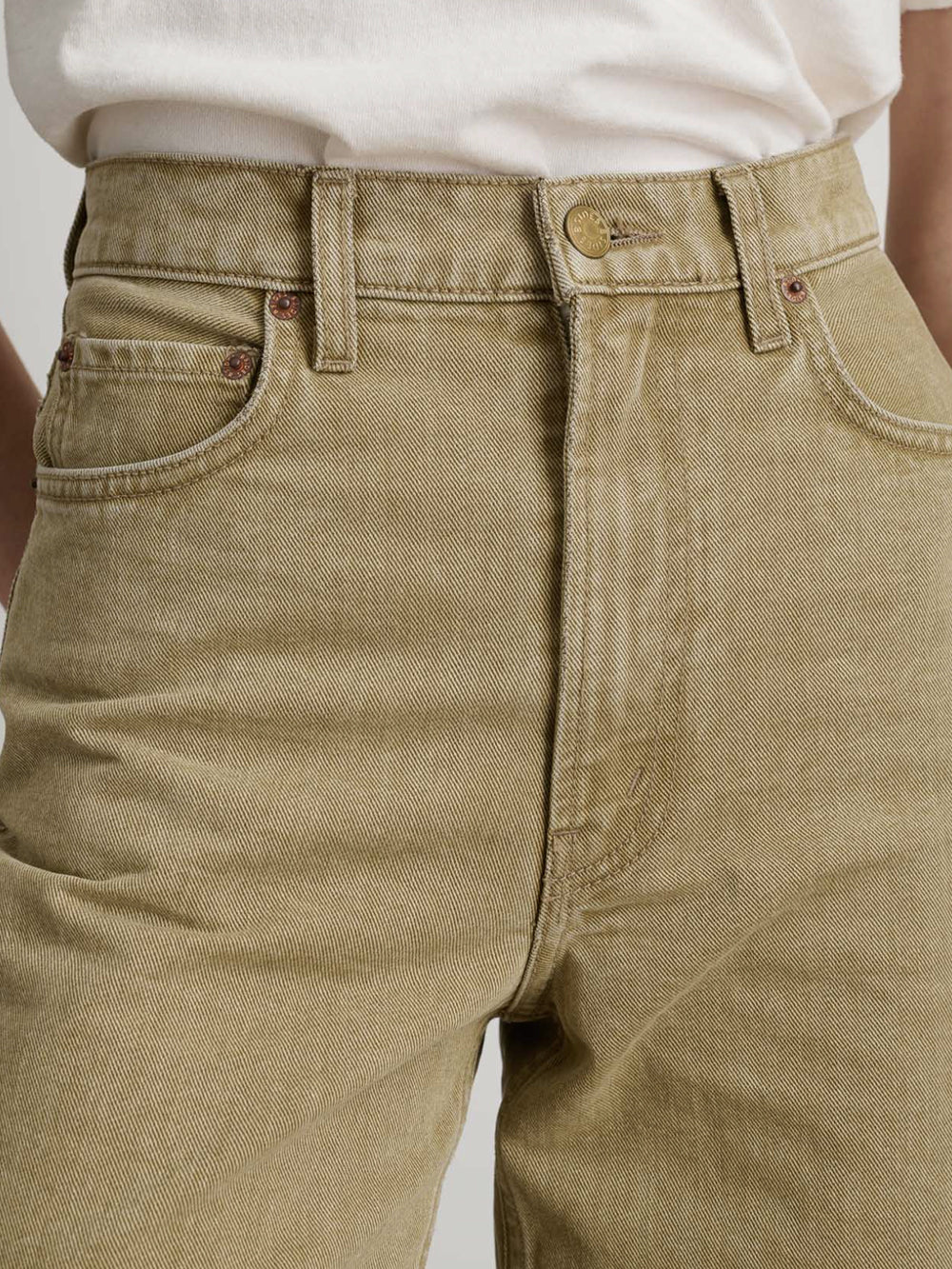 Ce jean Elissa Stone Rinse réalisé par B SIDES est fabriqué aux Etats-Unis dans un coton teint en fil et lavé à la pierre pour obtenir une teinte cantaloup.