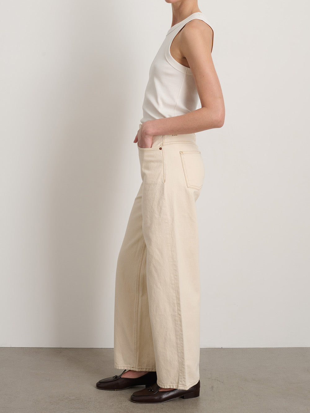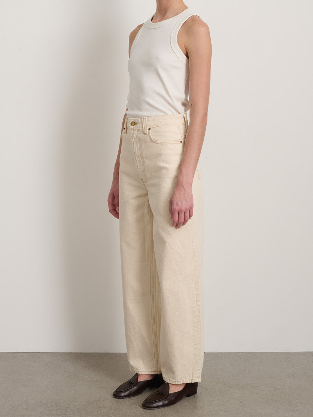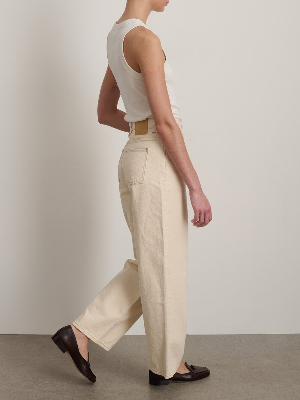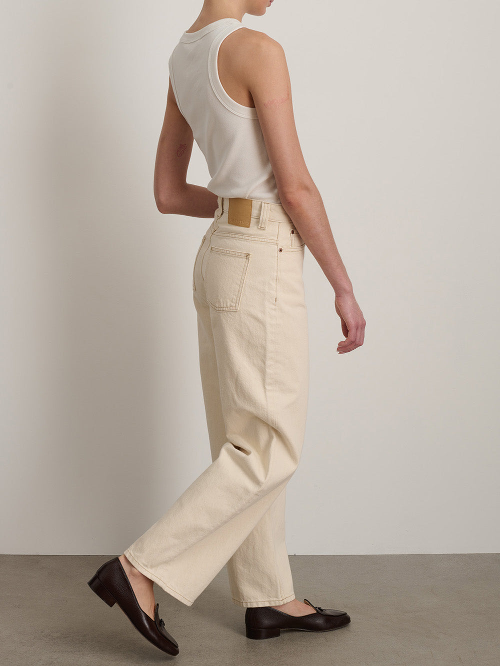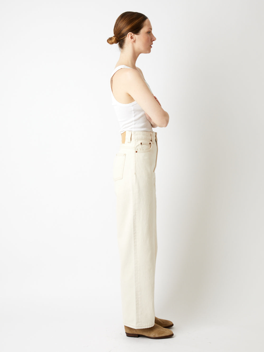 Le jean Easy Mid Relaxed couleur Clair Rinse de la marque BSIDES en denim clair a une coupe slouch et décontractée, une taille normale et une jambe longue. Cette pièce est conçue à New York et fabriquée de manière responsable à Los Angeles.
