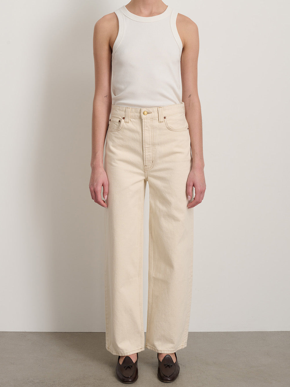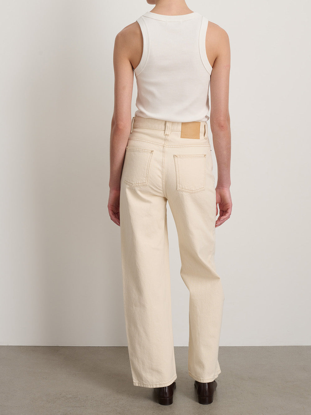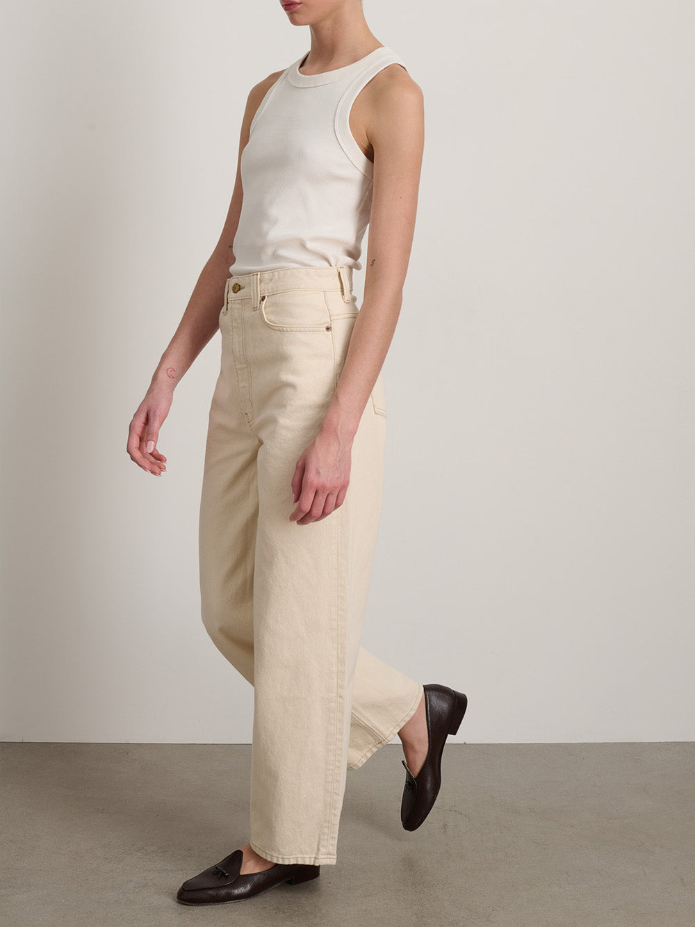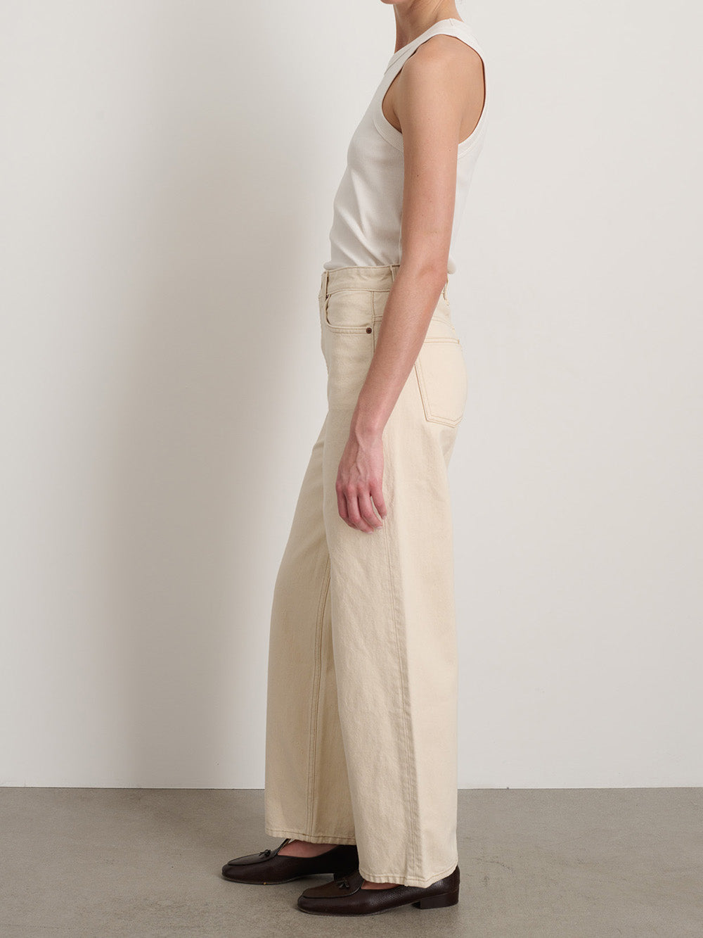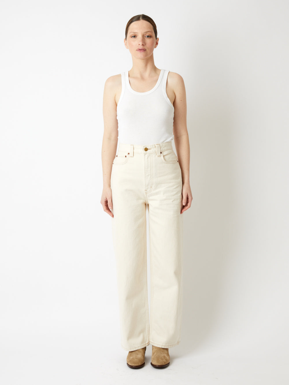 Le jean Easy Mid Relaxed couleur Clair Rinse de la marque BSIDES en denim clair a une coupe slouch et décontractée, une taille normale et une jambe longue. Cette pièce est conçue à New York et fabriquée de manière responsable à Los Angeles.