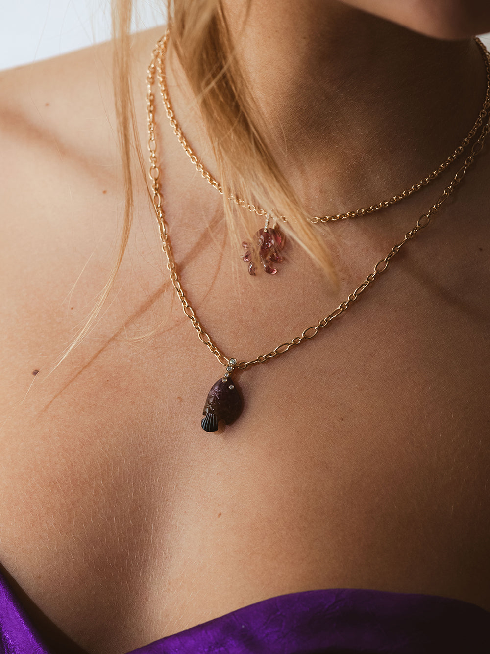 pendentif poisson tourmaline et diamants polki