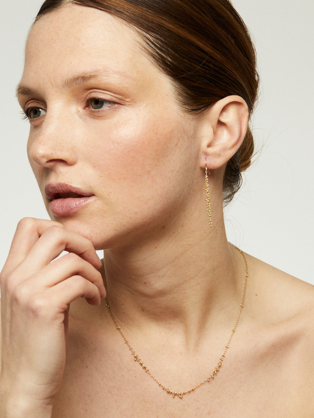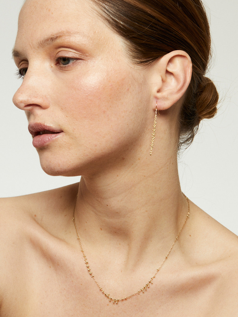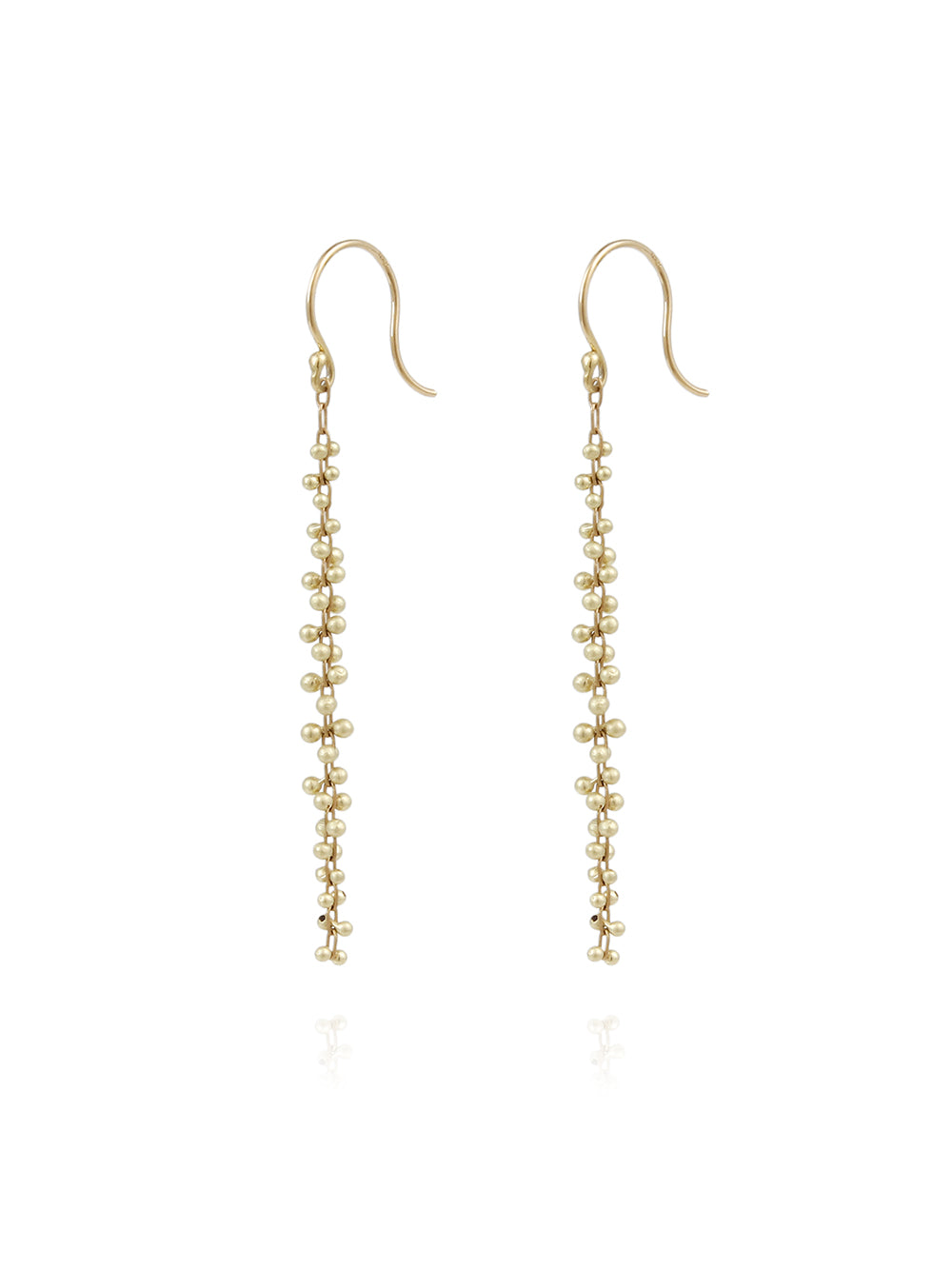 Ces boucles d'oreilles grappes perlées signées TenThousandThings sont composées d'une longue tiges décorées de perles, le tout en or jaune 18 carats.