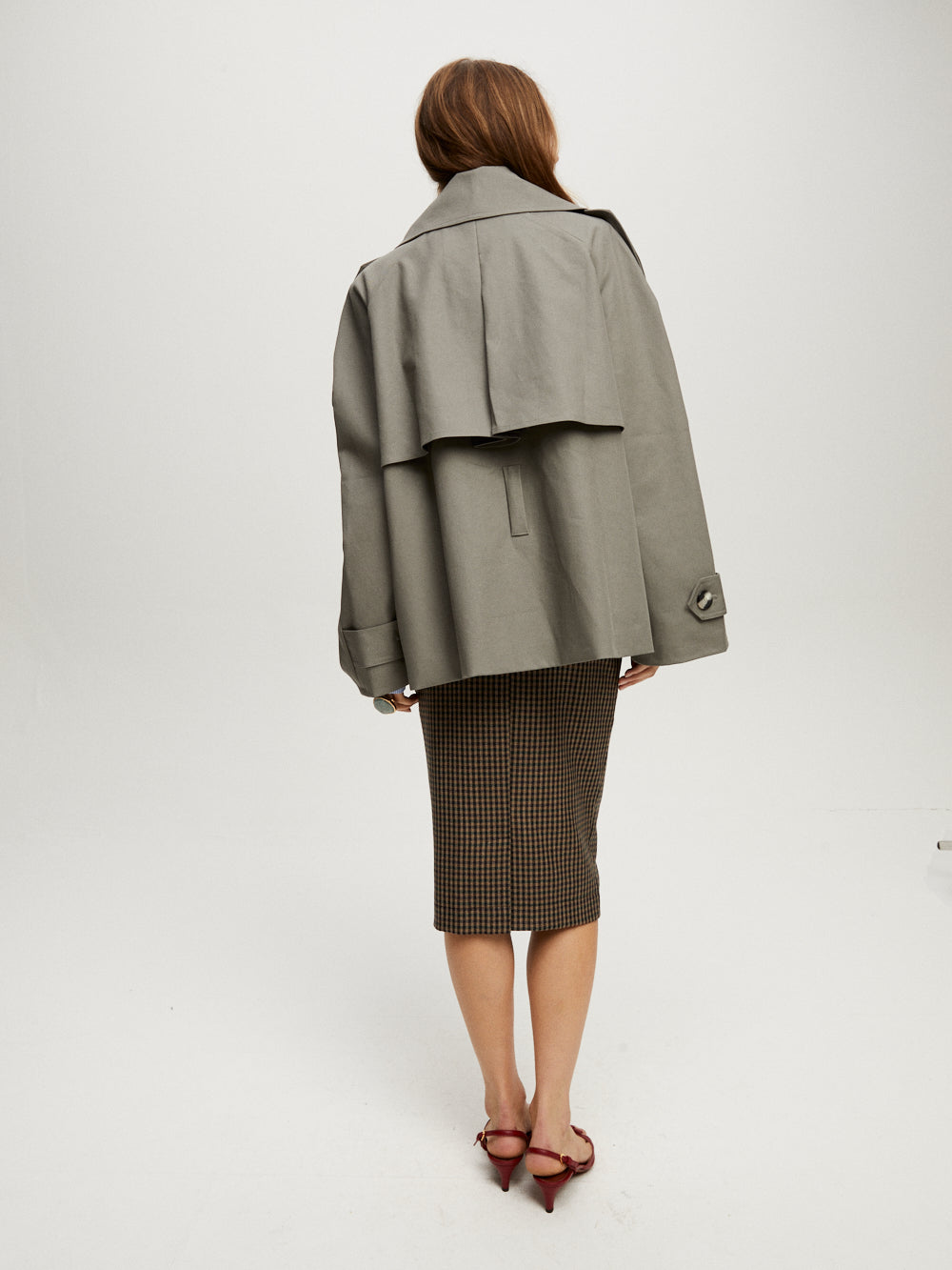 Trench Gabi signé Françoise réalisée avec des tissus non utilisés issus des grandes maison de mode. Une veste de style trench à la coupe oversized.