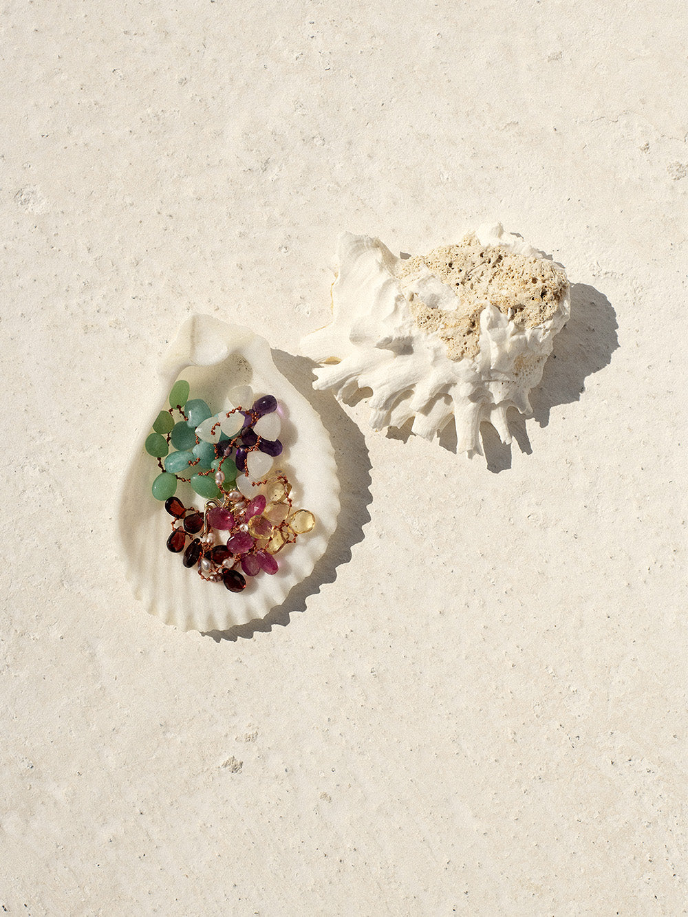 - Perles d'eau douce, grenats, saphirs roses, pierres de lune, chrysoprases, amazonites, améthystes
