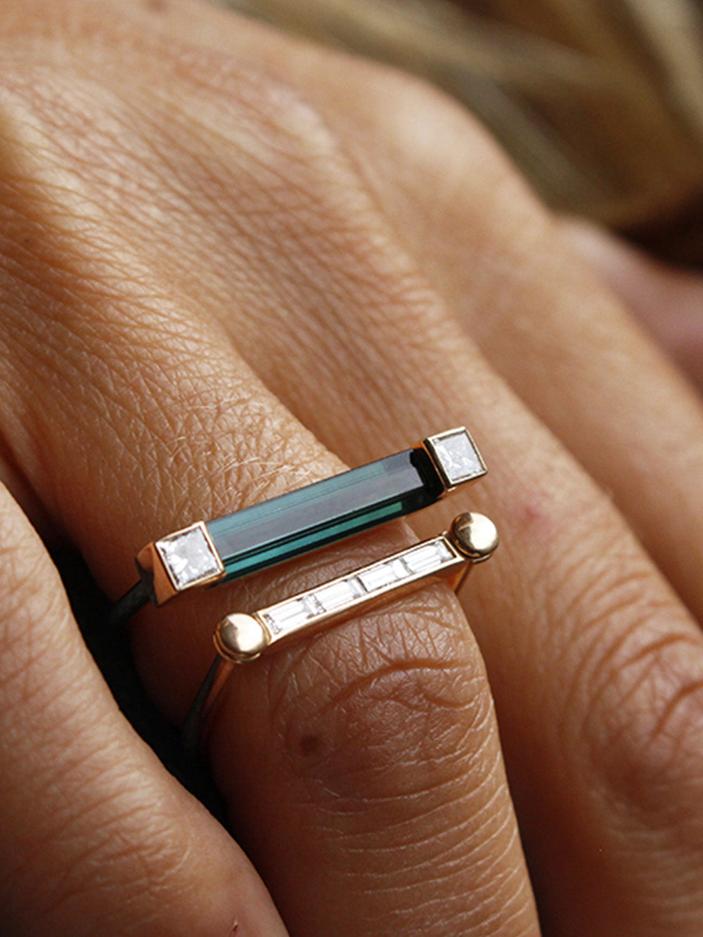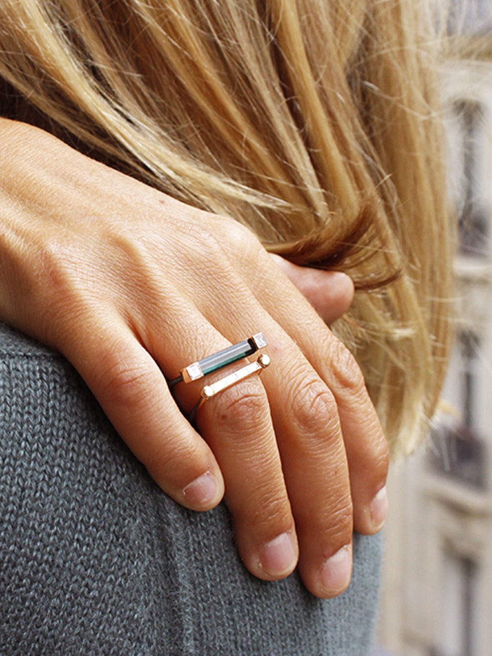 Bague Molitor en or jaune 18 carats et diamants Yv.Delloye. Ce bijou est une pièce entièrement réalisée à la main dans l'atelier de joaillerie parisien de la maison.
